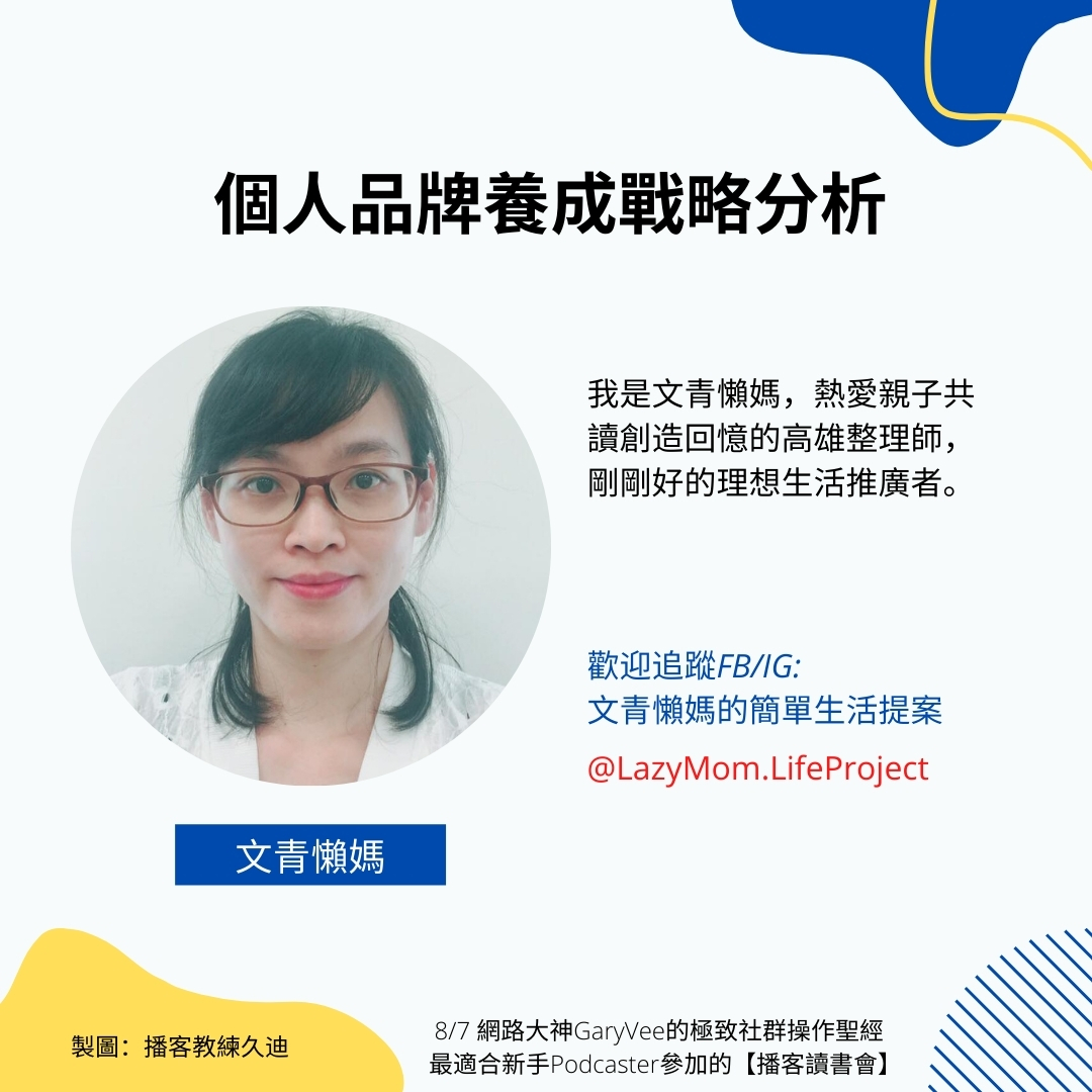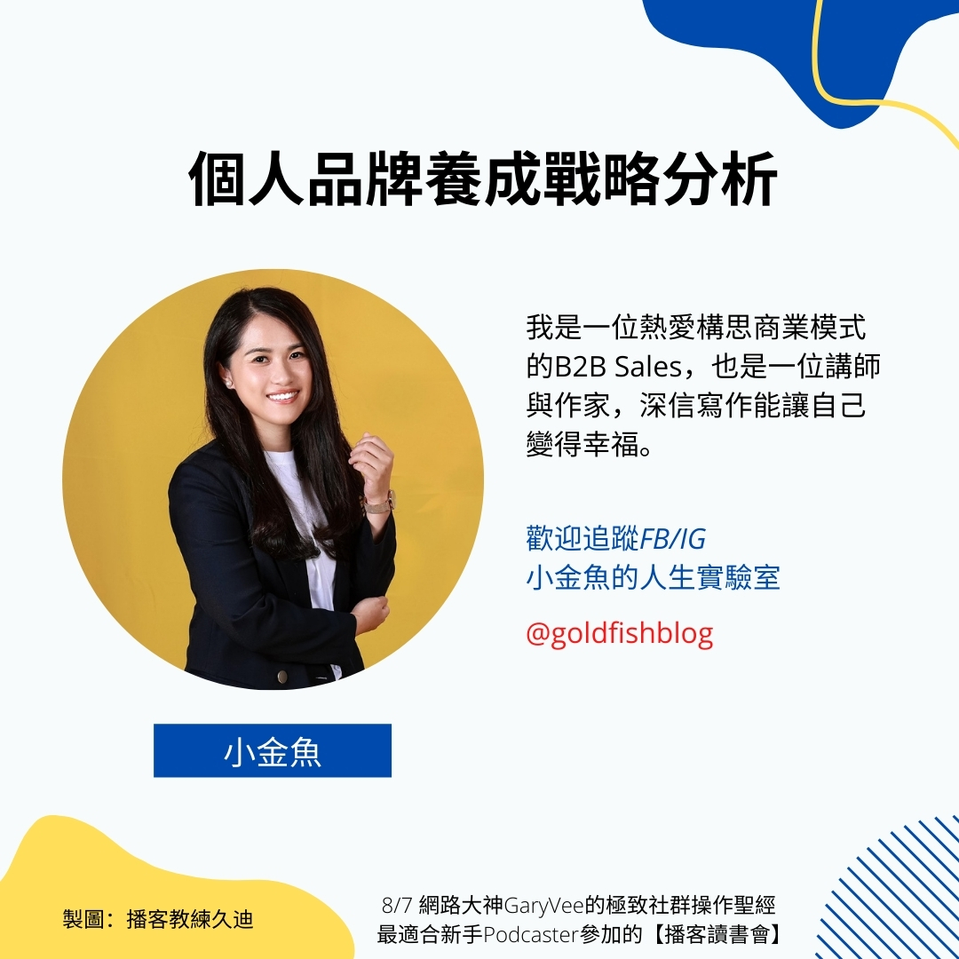 久迪:我其實追蹤美國網路大神GaryVee粉專好幾年了,一直很認同他傳播的許多個人品牌經營理念,這次播客讀書會選擇導讀《我是GaryVee:網路大神的極致社群操作聖經》,是希望可以從他書中分享的經驗,學習以宏觀的方式經營社群媒體、經營個人品牌,再以我個人的觀察與分析整理,跟大家共同學習如何整合各個媒體平台,多樣化、客製化打造個人品牌與內容經營。