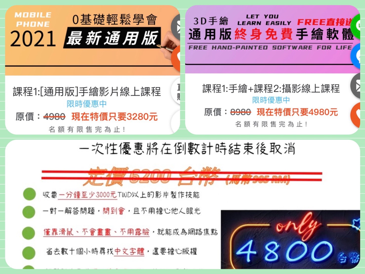 外面課程費用3280....4980....4800