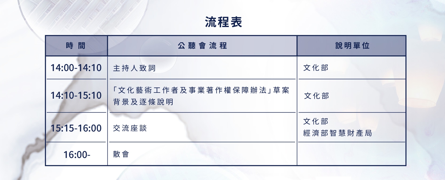 - 文化藝術工作者及事業著作權保障辦法草案公聽會 工作小組聯繫方式 -