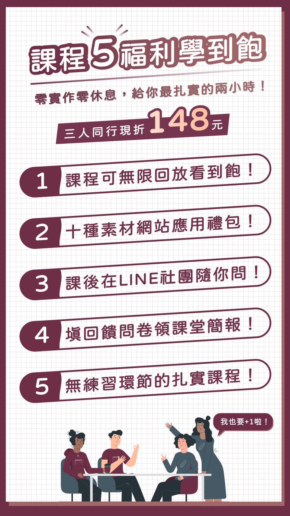 備註:兩場的課程內容是一樣的喔!開兩個時段是為了方便大家更好安排時間