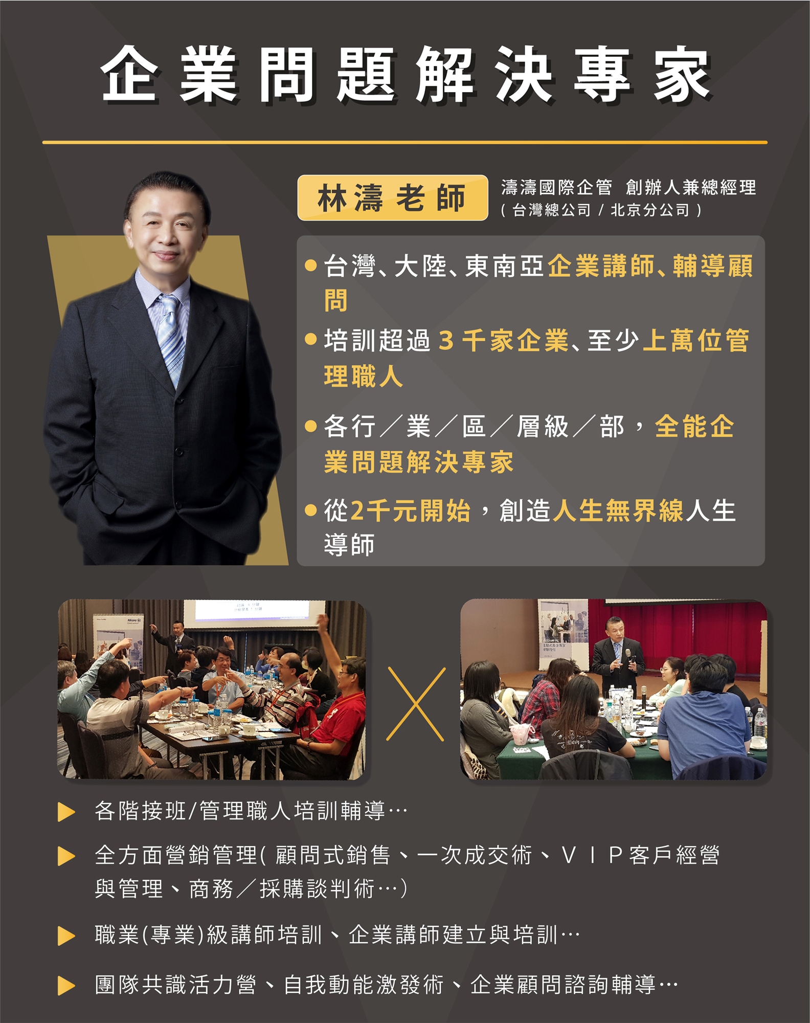 企業問題解決專家 - 林濤老師 『快速敲醒您的管理思維』