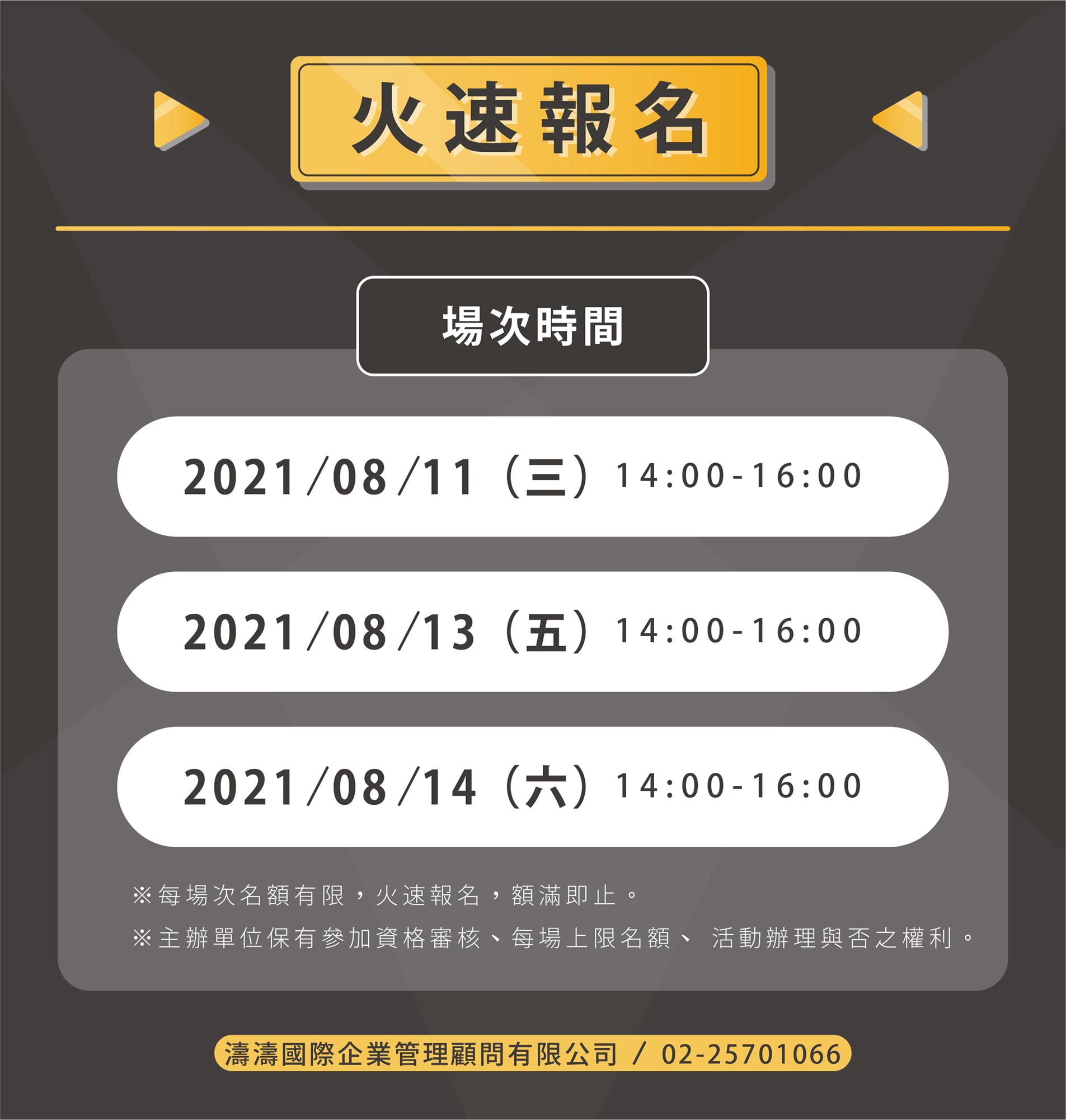 <<貼心提醒>> 您好請加入主辦單位一對一客戶為好友,本活動將將開課前兩天使用LINE提供課程連結給您。本次課程使用線上會議軟體 ZOOM 進行直播,請於課前程先安裝好ZOOM 線上直播軟體。ZOOM使用說明書及下載點如下: 電腦版 : https://tw-taotao.com/zoom/ 手機版 : https://tw-taotao.com/elementor-27986/ (建議與會時使用電腦版本,功能較完整,視訊也會比較清楚哦。) 期待線上與您相見