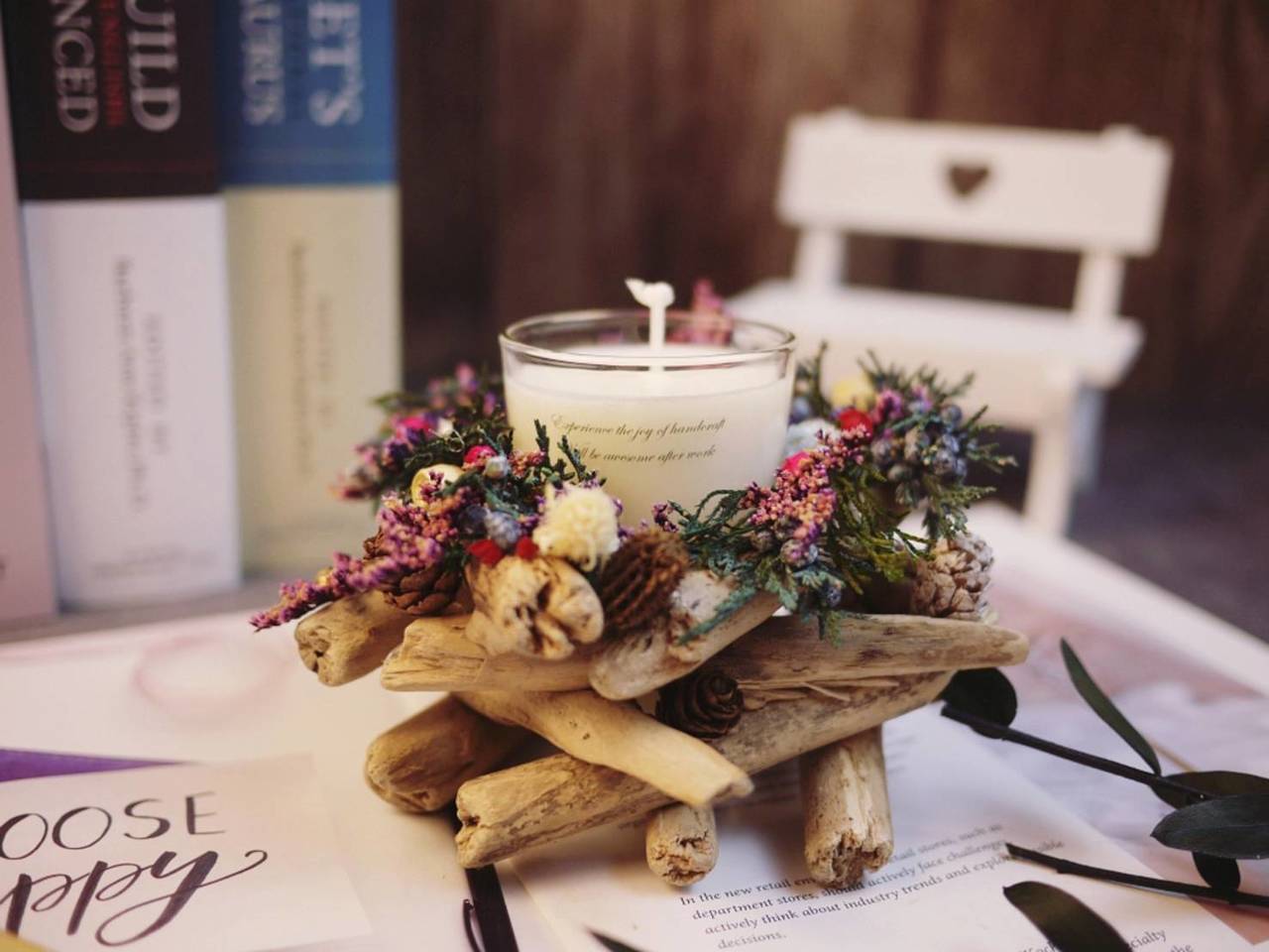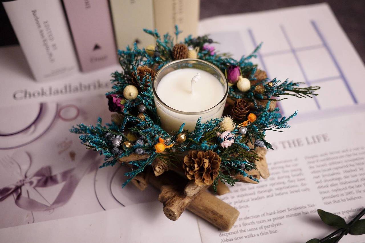將自己手作的燭台裝飾上喜歡的花朵,燭台既是傢飾品,也可以是情意豐富的禮物。