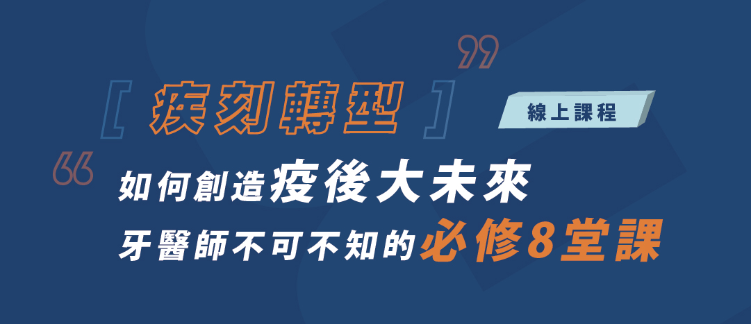 幾個月牙科在疫情籠罩之下,不論是看診流程、治療中或是營運上,相信牙醫師們都能深深感受到疫情對牙科的影響。其實在這個『嚴峻』的環境下,正是『轉型』的好時機!要如何在患者完全回流之前做足準備成為領先者,創造疫後大未來?