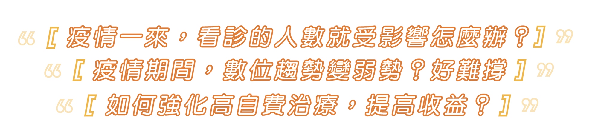 🌟第 1 堂課程:講師會以診所營收在疫情下的變化打頭陣,來探討疫情後,如何重新調整診所的策略方向。