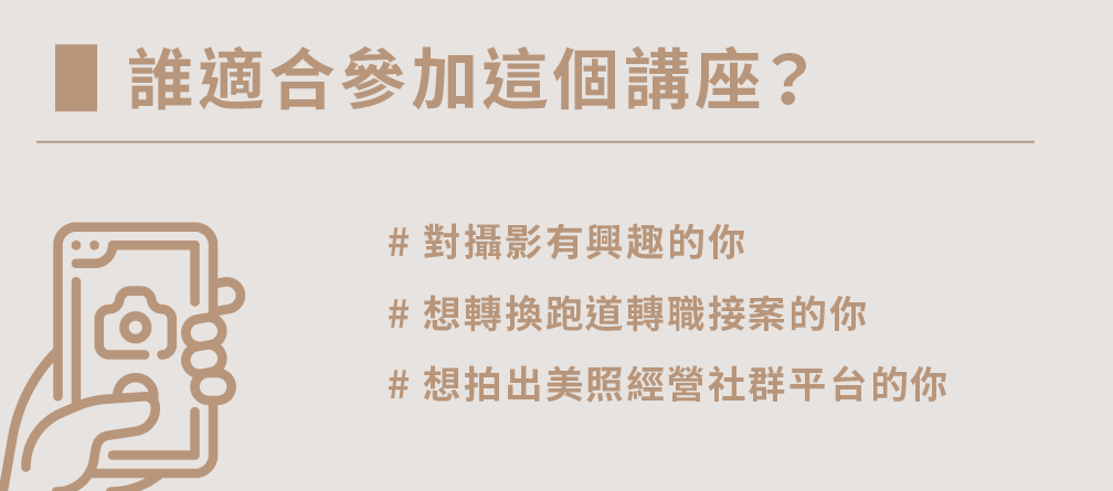 如果你對手機攝影有著滿滿的興趣,也想拍出媲美單眼的細膩質感美照,那麼這一場講座絕不容你錯過!
