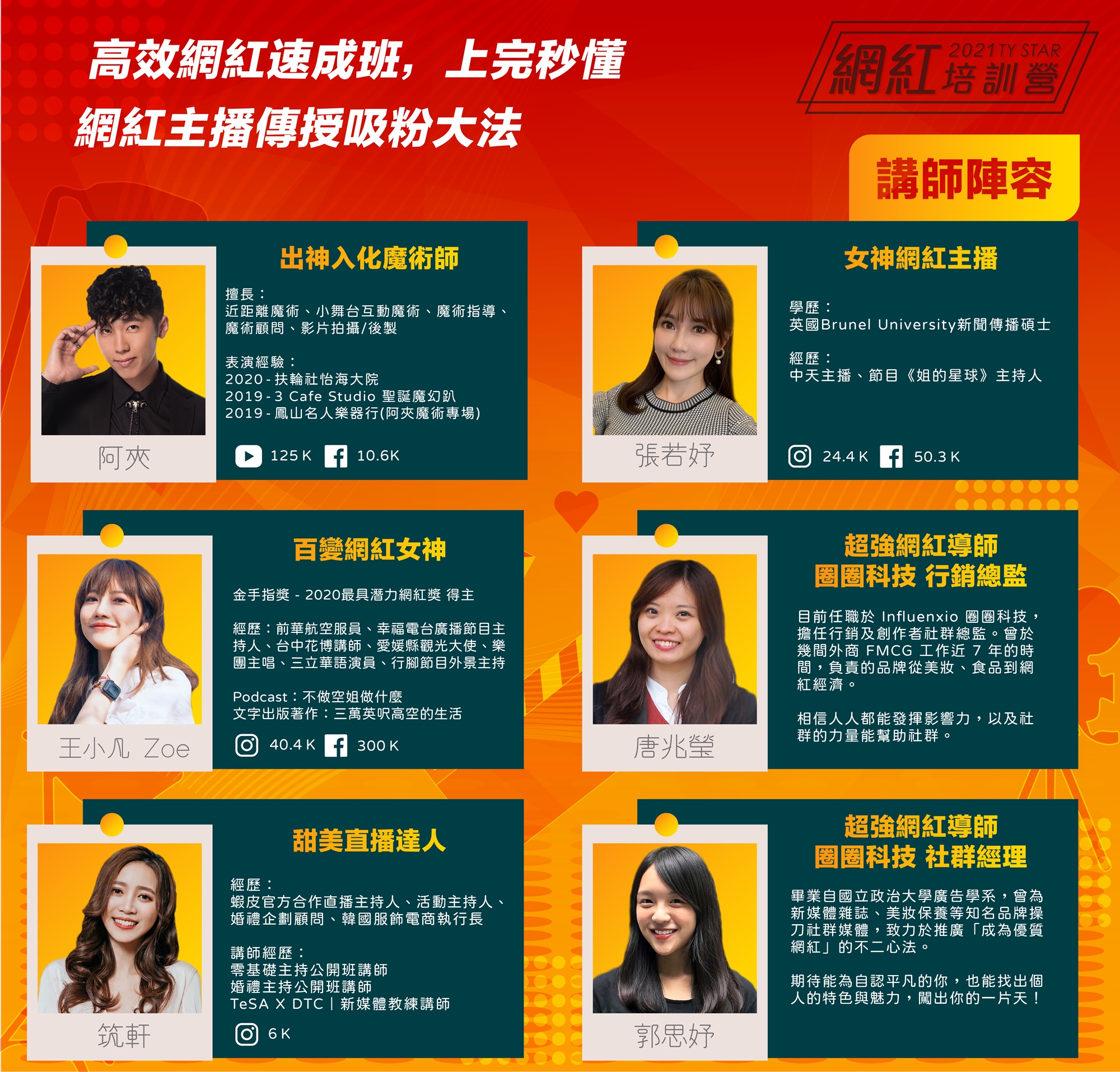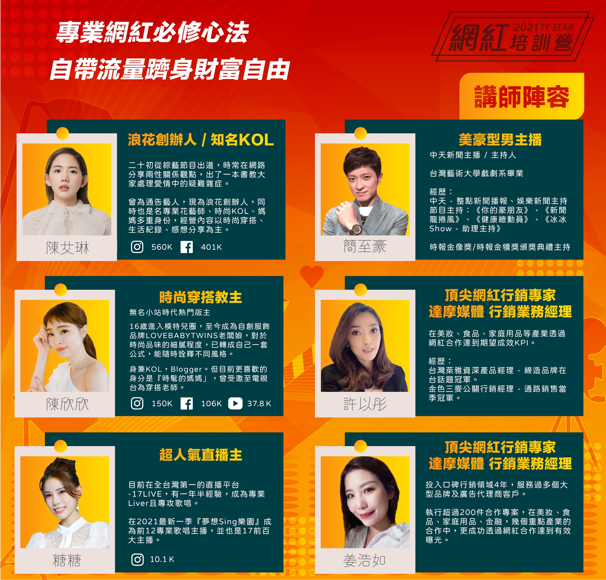2021 TY STAR 網紅培訓營 第二梯 講師陣容