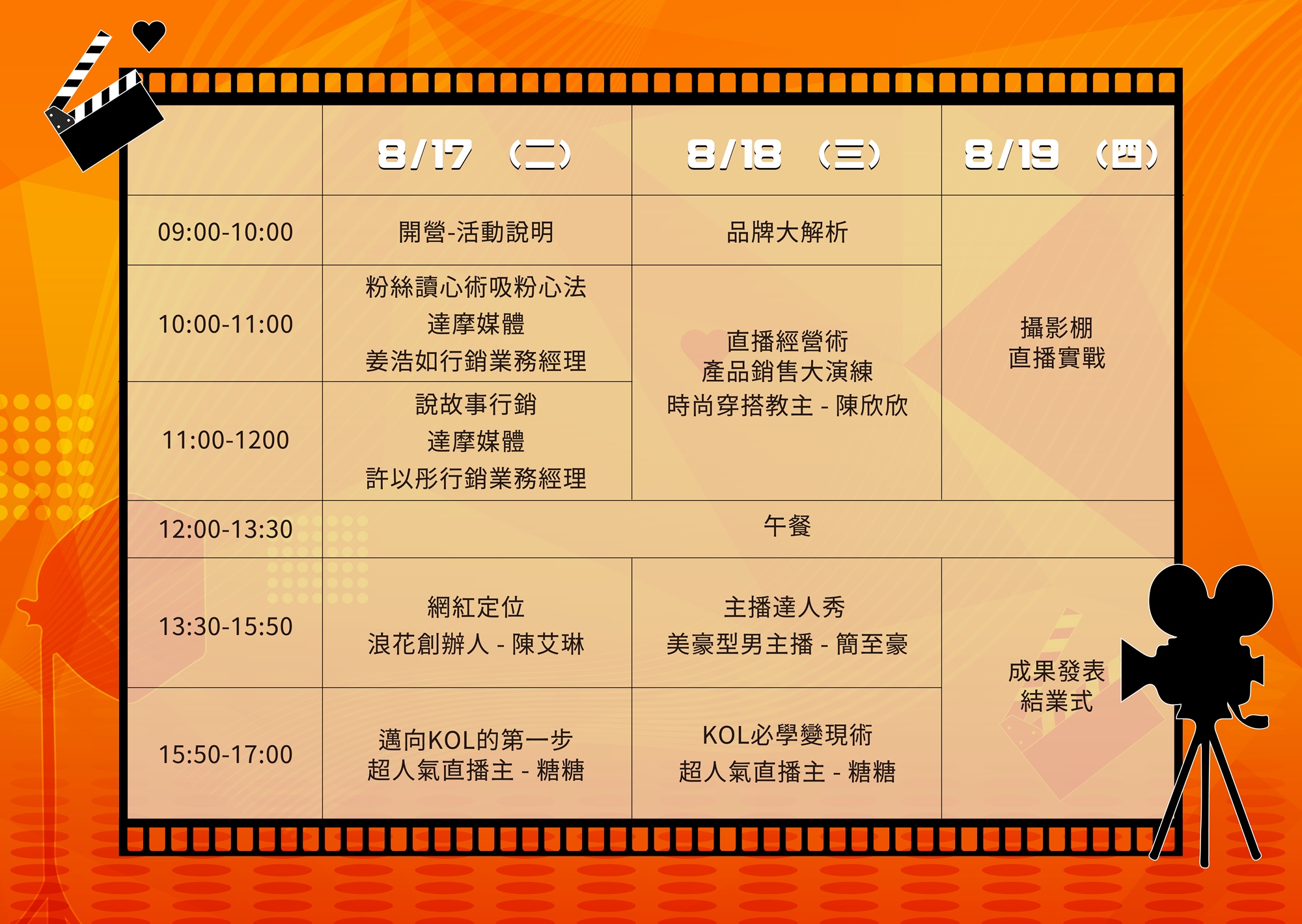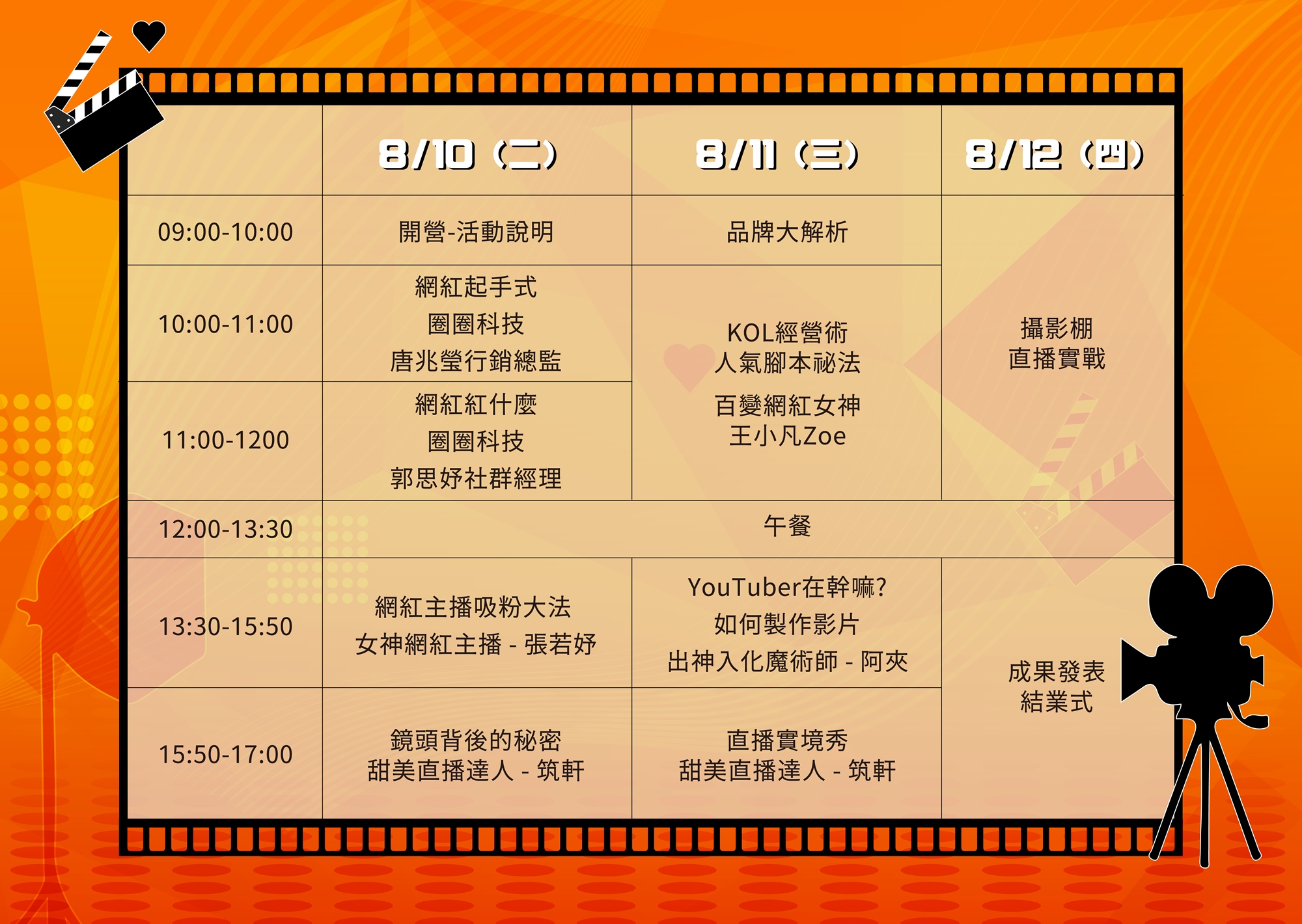 2021 TY STAR 網紅培訓營 第二梯 課程表