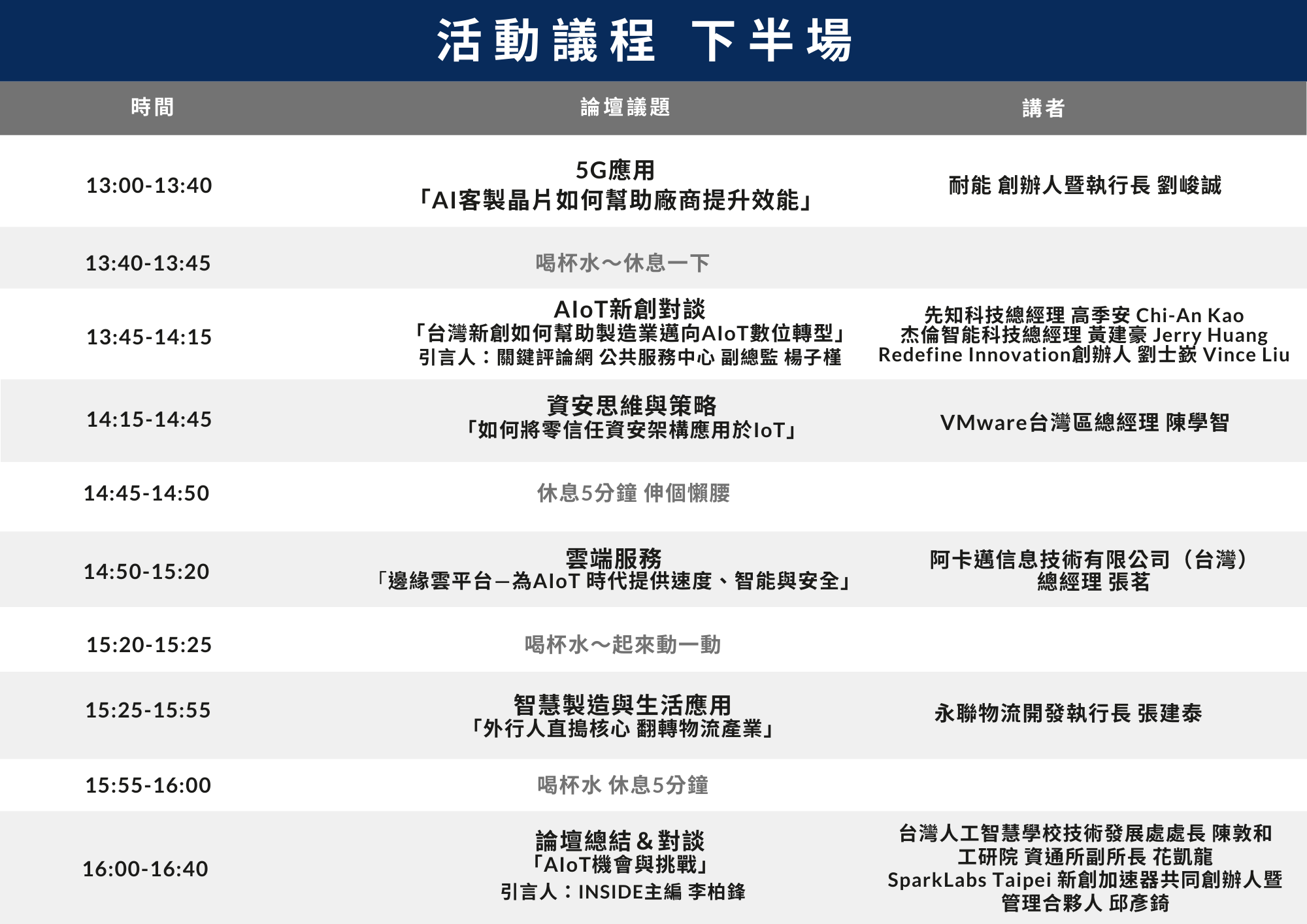 ▌活動議程(主辦單位保留變更議程之權利,實際議程以主辦單位當日公告為主。)