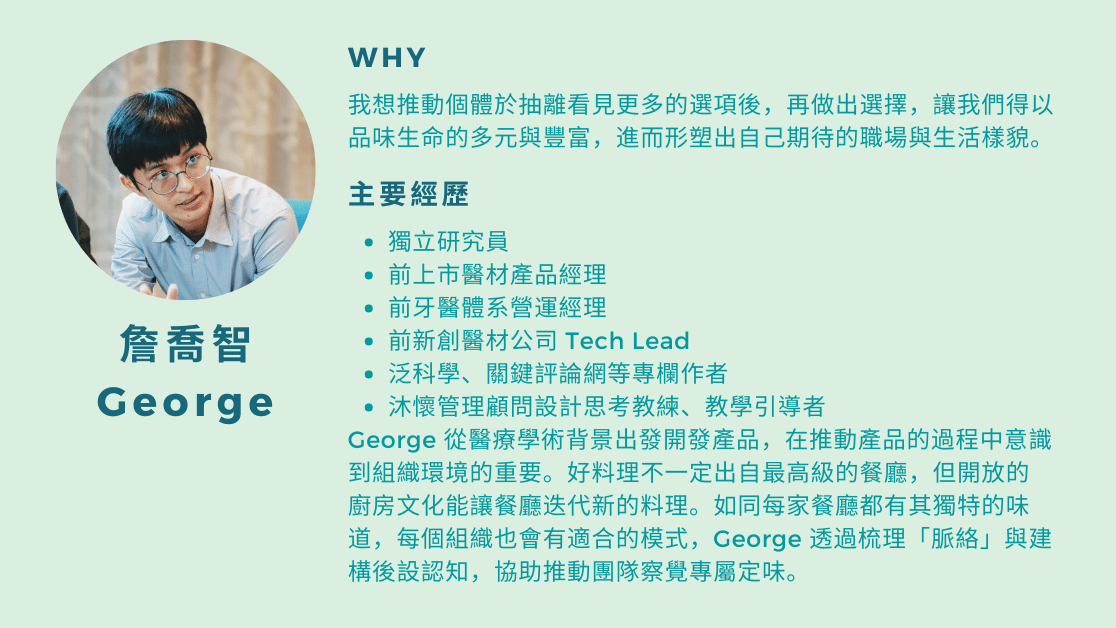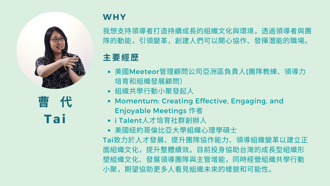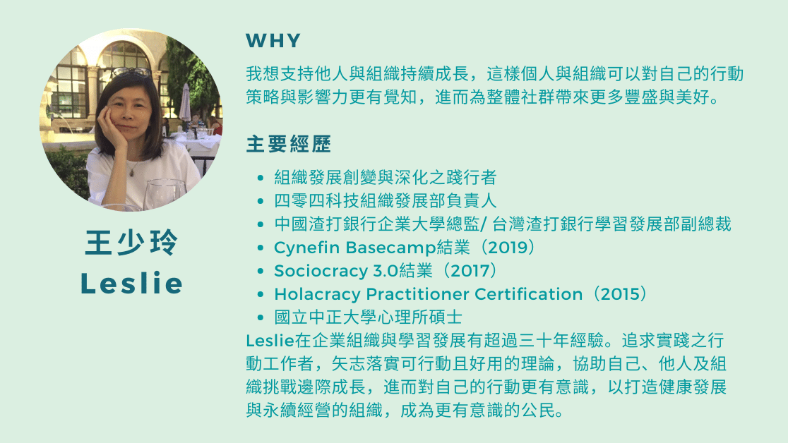 人資及主管扮演了組織轉型的關鍵角色,我們相信培力這群人,在「未來組織設計」的路上,從自我轉化開始,成為有方向、有能力的改變者,可以帶領企業走向更好。