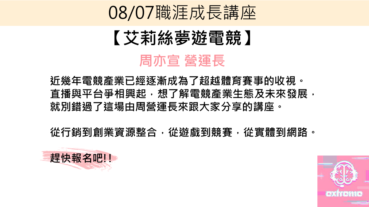 TYS線上講座 [極限電競]-艾莉絲夢遊電競