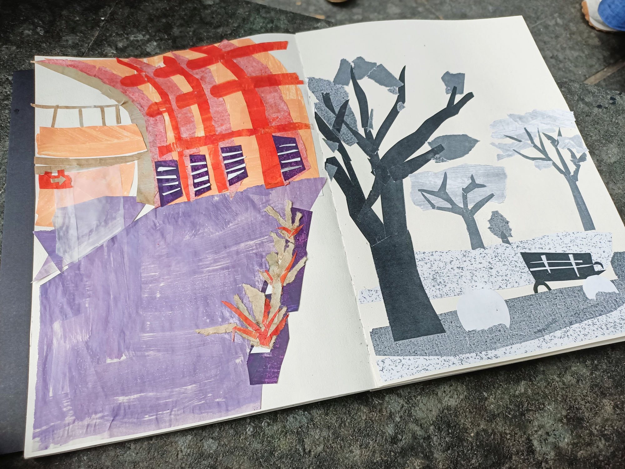 ➤後2個小時我們將練習老師為學生準備自製平常比較不會使用的顏色紋理色紙,來突破自己的安全顏色區。透過紙質的感受與拼貼的練習我們會學習更加延展我們對我們身處的環境的感受力與樂趣,回到最簡單的手作感。