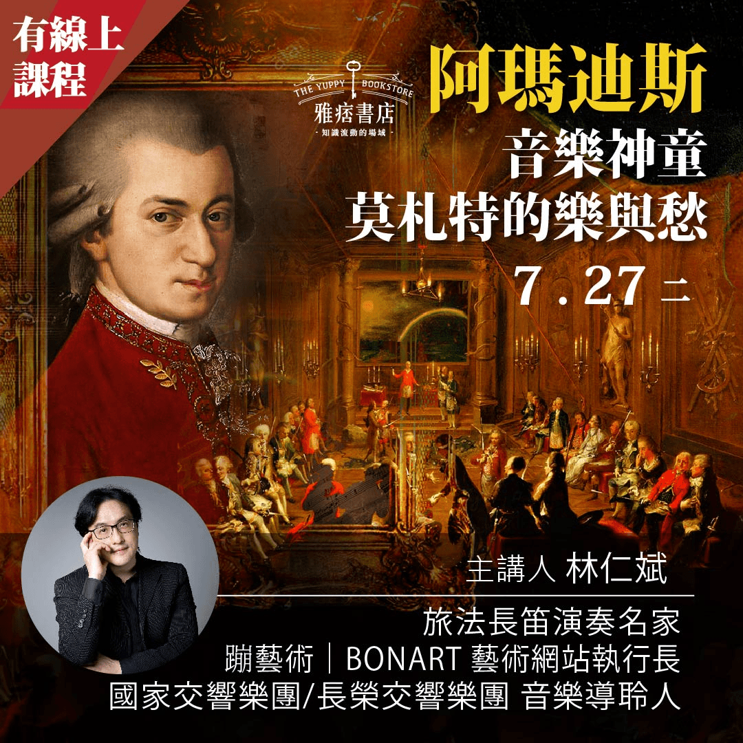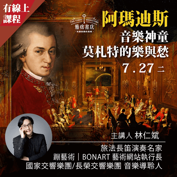 本場講座帶大家看《莫札特·阿瑪迪斯》傳奇的一生,並深入分析莫札特的創作風格與音樂作品中的情感力量。適合對「古典樂文化」與「莫札特」有興趣的人參加。