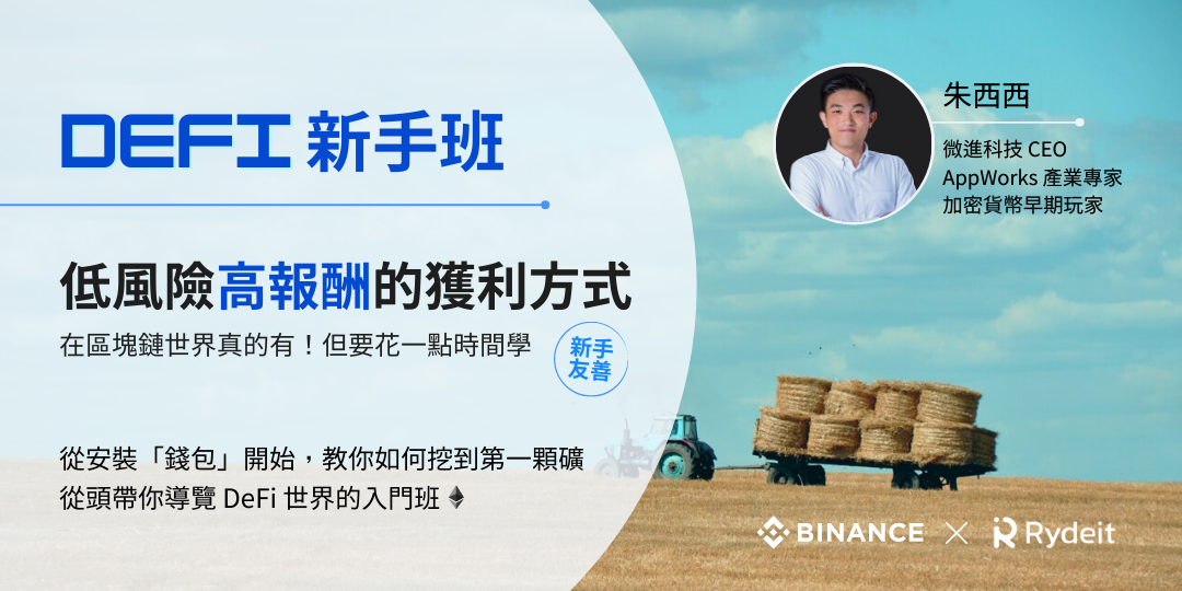 只要透過 Rydeit 發財車的邀請碼註冊幣安,就能在課程當天收到約等值 100 元台幣的加密貨幣,參與課程上的 DeFi 產品操作。且未來在幣安交易享有市場最優 20% 手續費回饋。