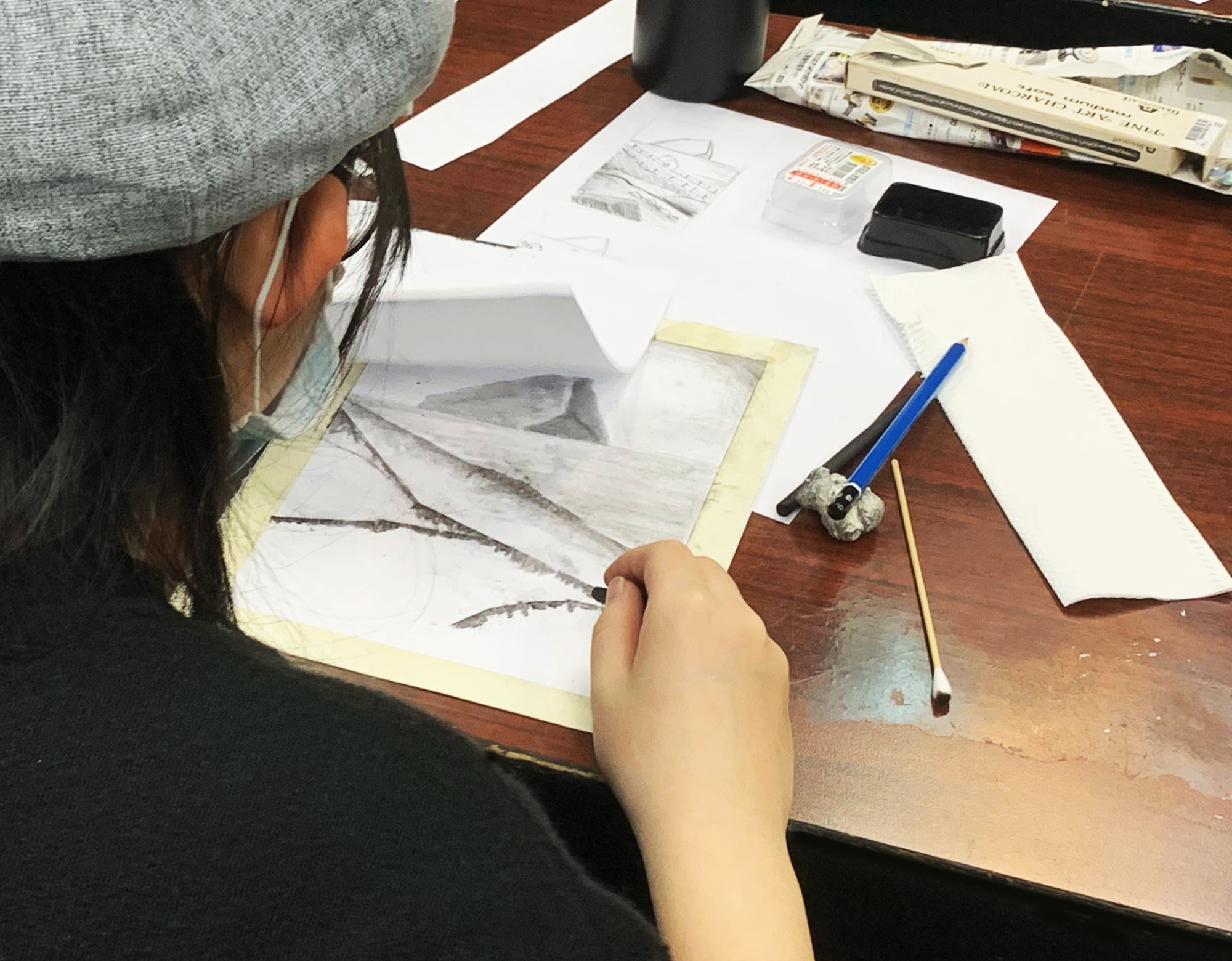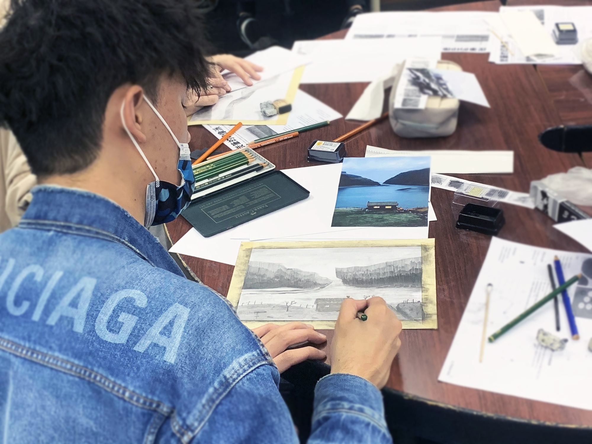 1. 炭筆的印象派:欣賞大自然的天際線以及遼闊的天空,並以此為靈感,分析光與影不同的濃淡建構出自己的黑白的風景畫、並認識拓印法Forttage。