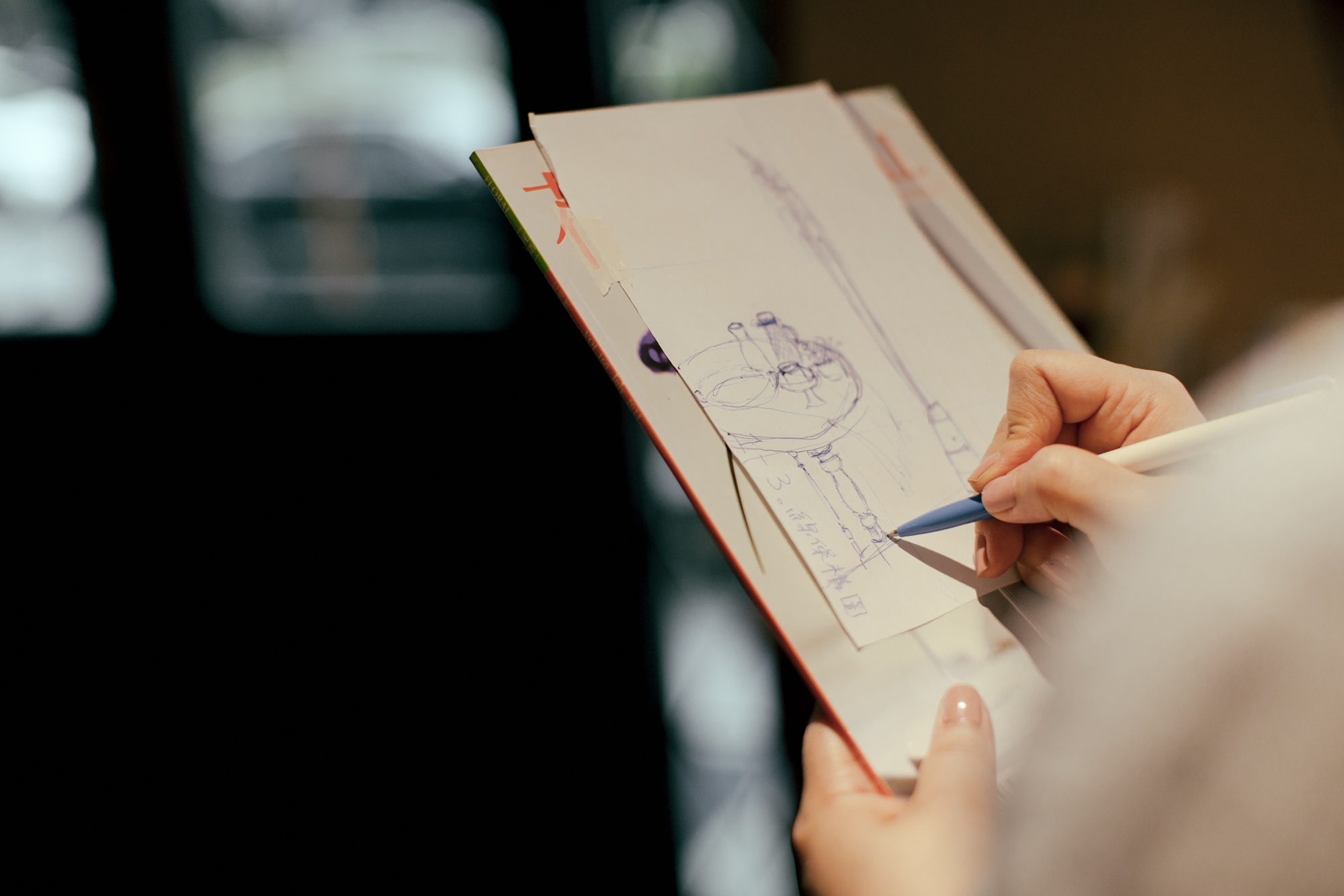 學生帶來的素材會跟老師先討論,老師會依照學生狀態再給不同簡單的延伸任務練習,例如請從現在你周圍的環境去觀察與構圖(也可能會叫你從窗外去觀察去構圖或蹲在地上去練習仰角觀察構圖等,如同實體課一樣。),所以大部份時間你不會一直看著老師畫以及模仿,大部份是學生實作練習為主,並且我們會利用Line群組來即時上傳課中學生所有的練習來跟老師即時討論與給予建議回饋。