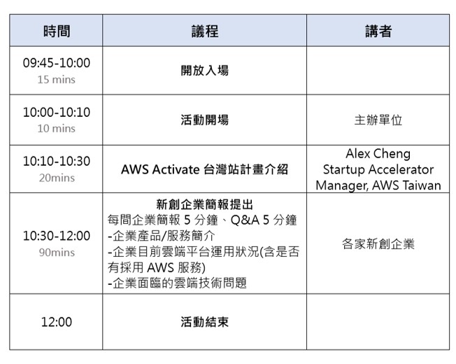 【協辦單位】社團法人中華民國全國創新創業總會、AWS Activate 計畫