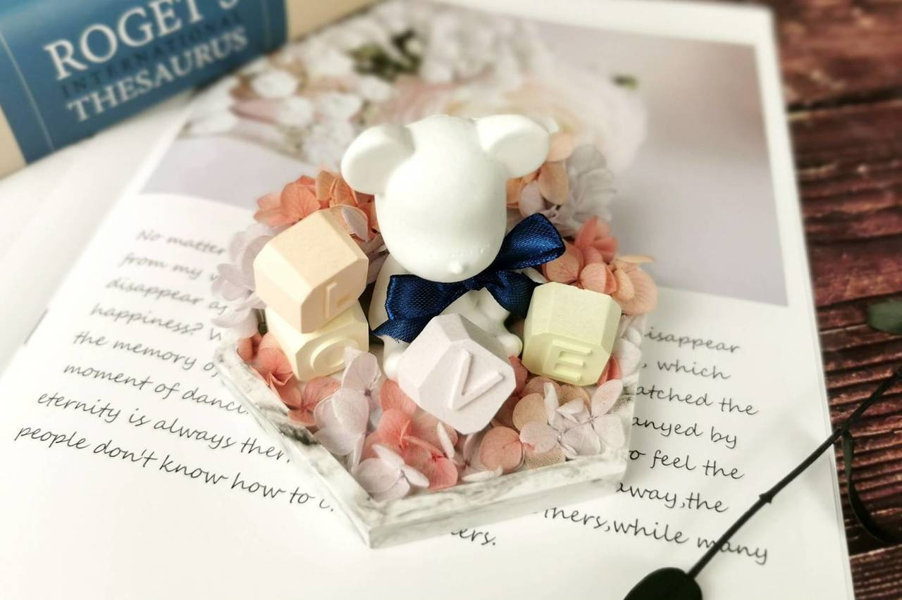 熊熊愛上妳擴香座 | 材料包這是一個擄獲人心的熊熊,而且不管是送禮還是收禮,絕對都值得炫耀。在找尋有質感的擴香石嗎?那就自己diy手作一個吧!這款材料包簡易製作又有質感,將可愛的熊熊與字母和花材互相搭配,成為一個漂亮的擴香石花台。美美的擴香石花台,就在家裡自己做吧!這款材料包我們也有附贈精油,可以將精油滴在擴香座上,每次經過的時候都會聞到芬芳的精油香味喔!