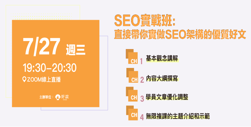 8/25 SEO實戰班:直接帶你實做SEO架構的優質好文