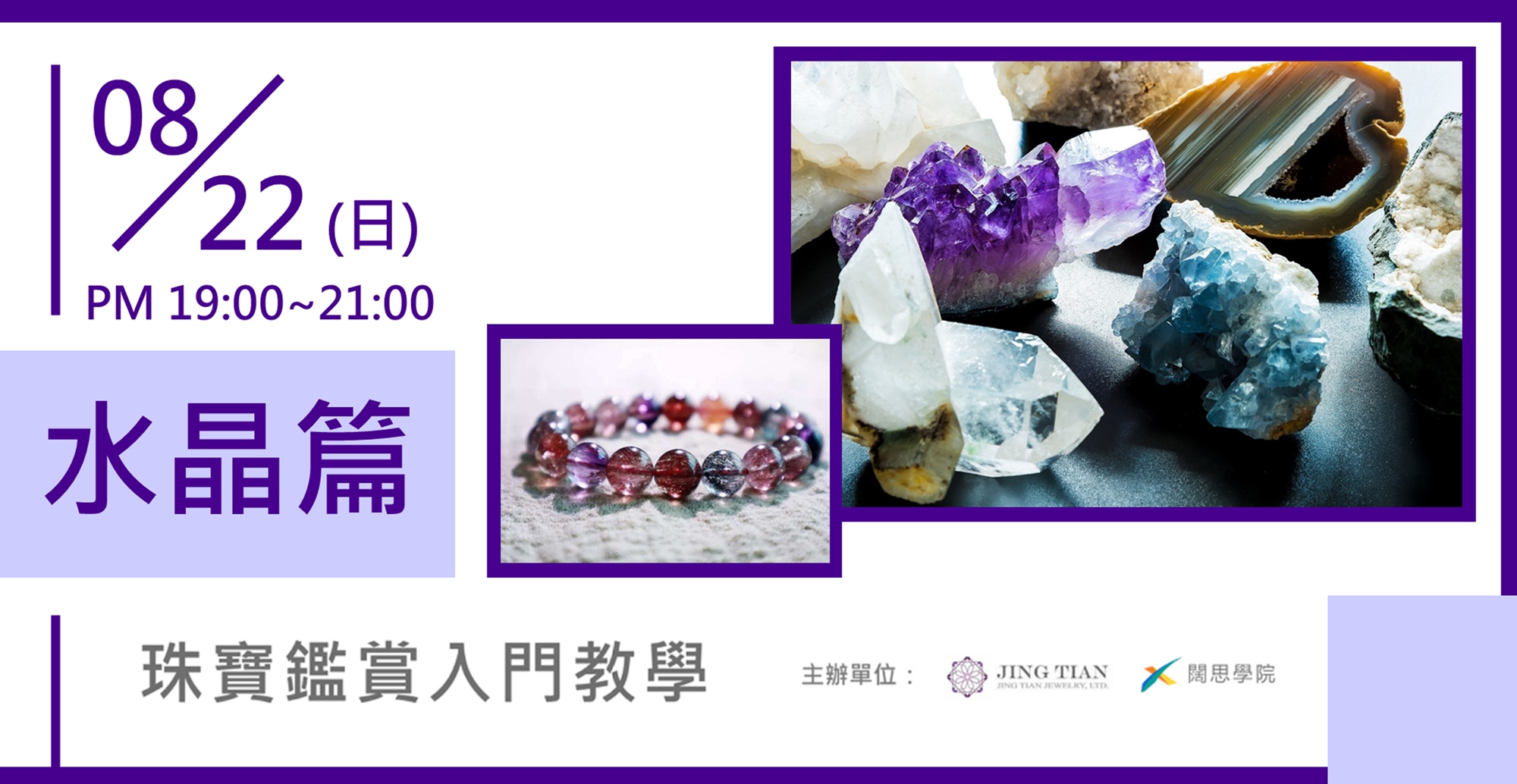 本次課程特別邀請《京天珠寶》的品牌營運總監 Lucas來帶大家認識水晶、石英家族的欣賞及鑑別,以及詳細介紹其特性、功能、優化處理、仿製品及如何選購等。也會帶來實際水晶做線上教學,帶領學員進入水晶及半寶石有趣和充滿能量的領域。