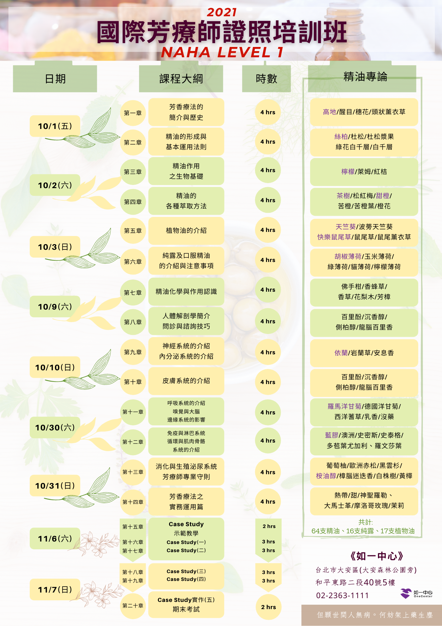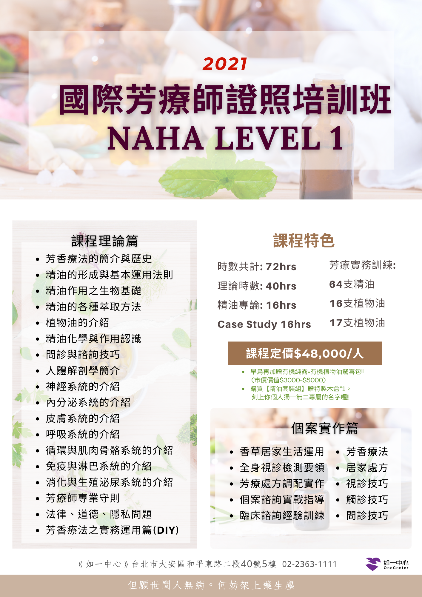 國際芳療師證照培訓班NaHa level 1(菁英班)