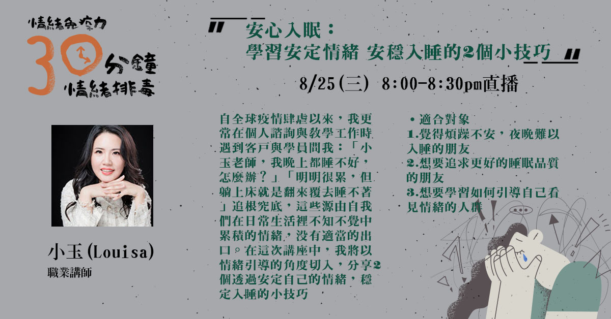 情緒免疫力,30分鐘的情緒排毒(免費Online講座系列)6- 安心入眠:學習安定情緒安穩入睡的2個小技巧