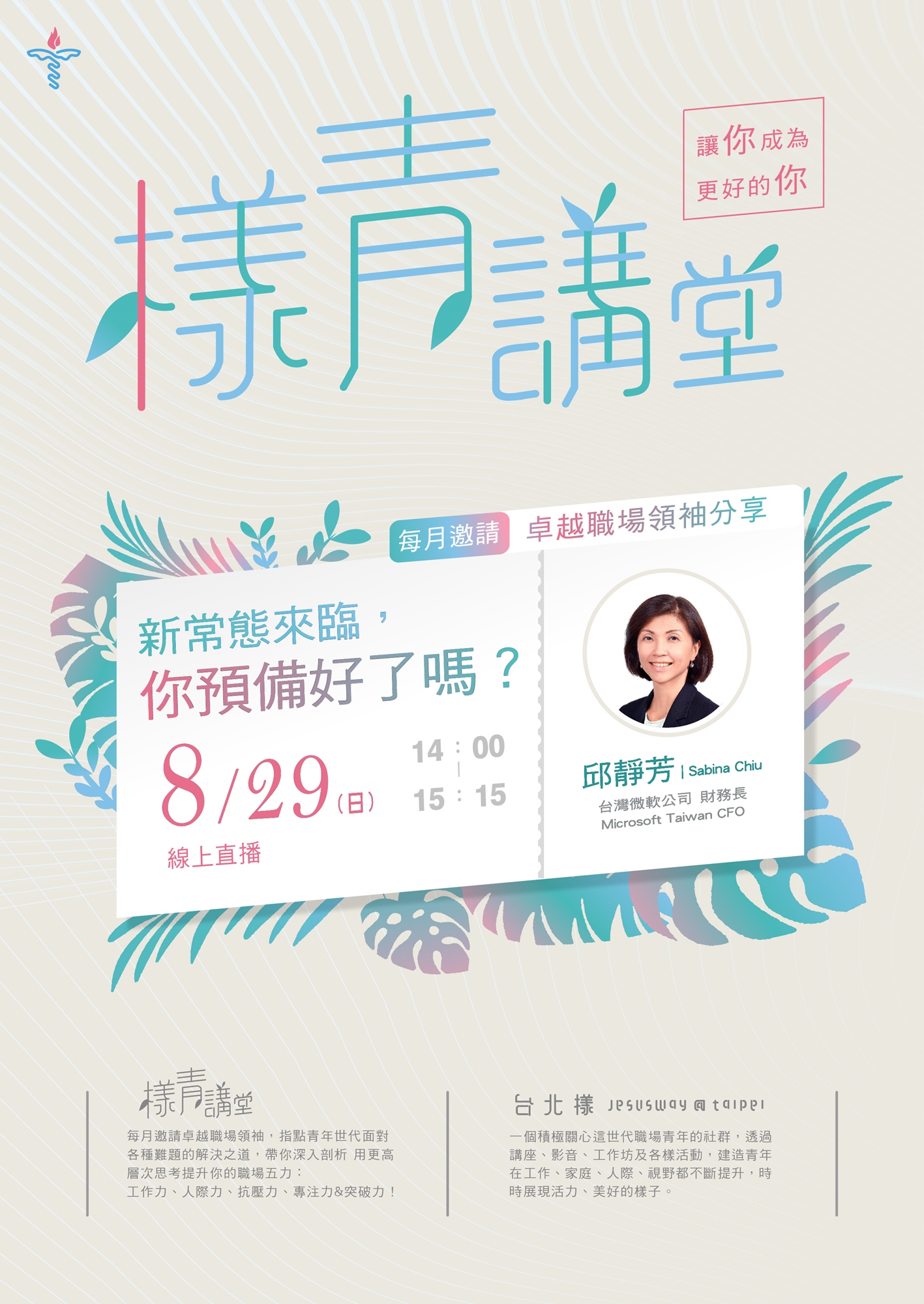 本次樣青講堂特別邀請到台灣微軟公司財務長 邱靜芳,來跟我們分享,她在企業中所觀察的變化,在混合辦公模式之下,企業開始重視哪些議題?又是如何衡量員工績效 ?