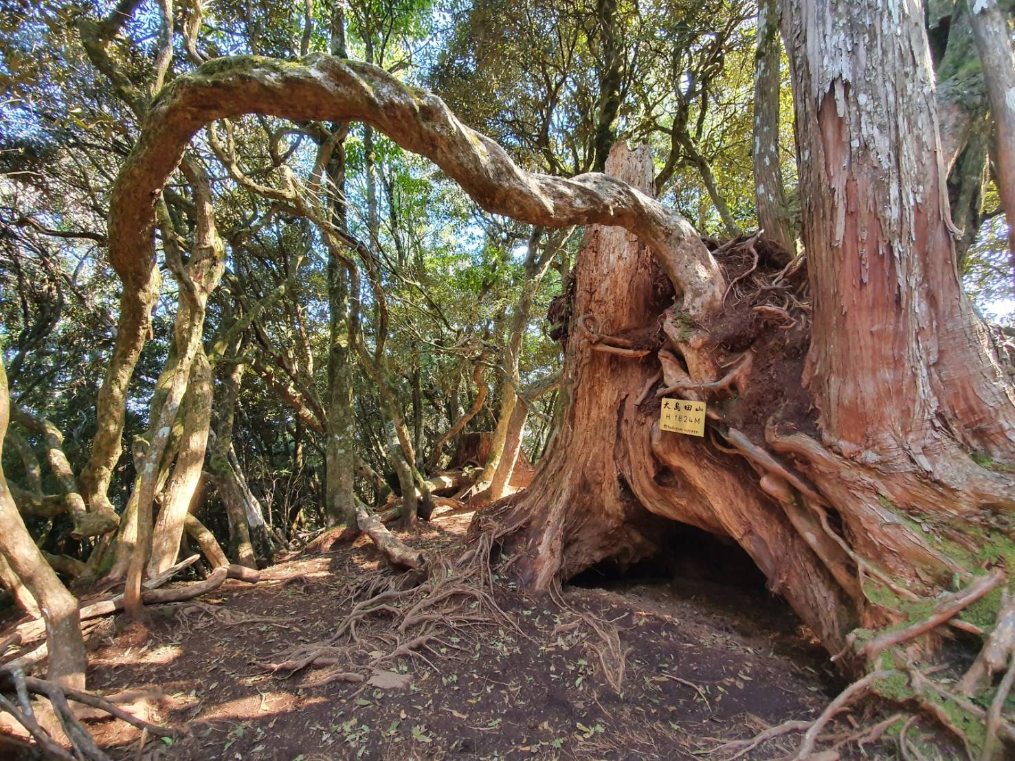 到達大島田山,映入眼簾的是一座巨型檜木頭和生長在上方的二代木。