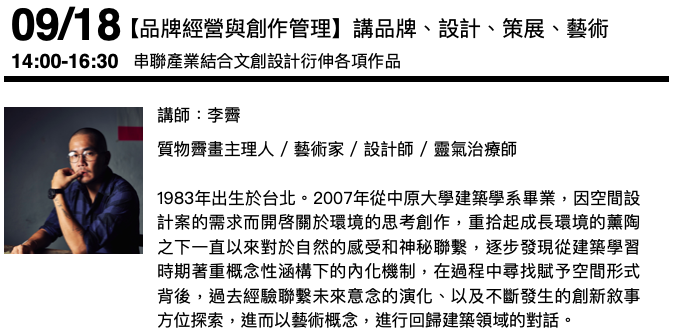 此次活動邀請到無氏設計的吳孝儒、質物霽畫的李霽及HANSCHIU的HANSCHIU,由專業設計師針對設計、發想、執行等面向進行分享,此外也安排了問答時間,參與者能提出想法與設計師進行交流。