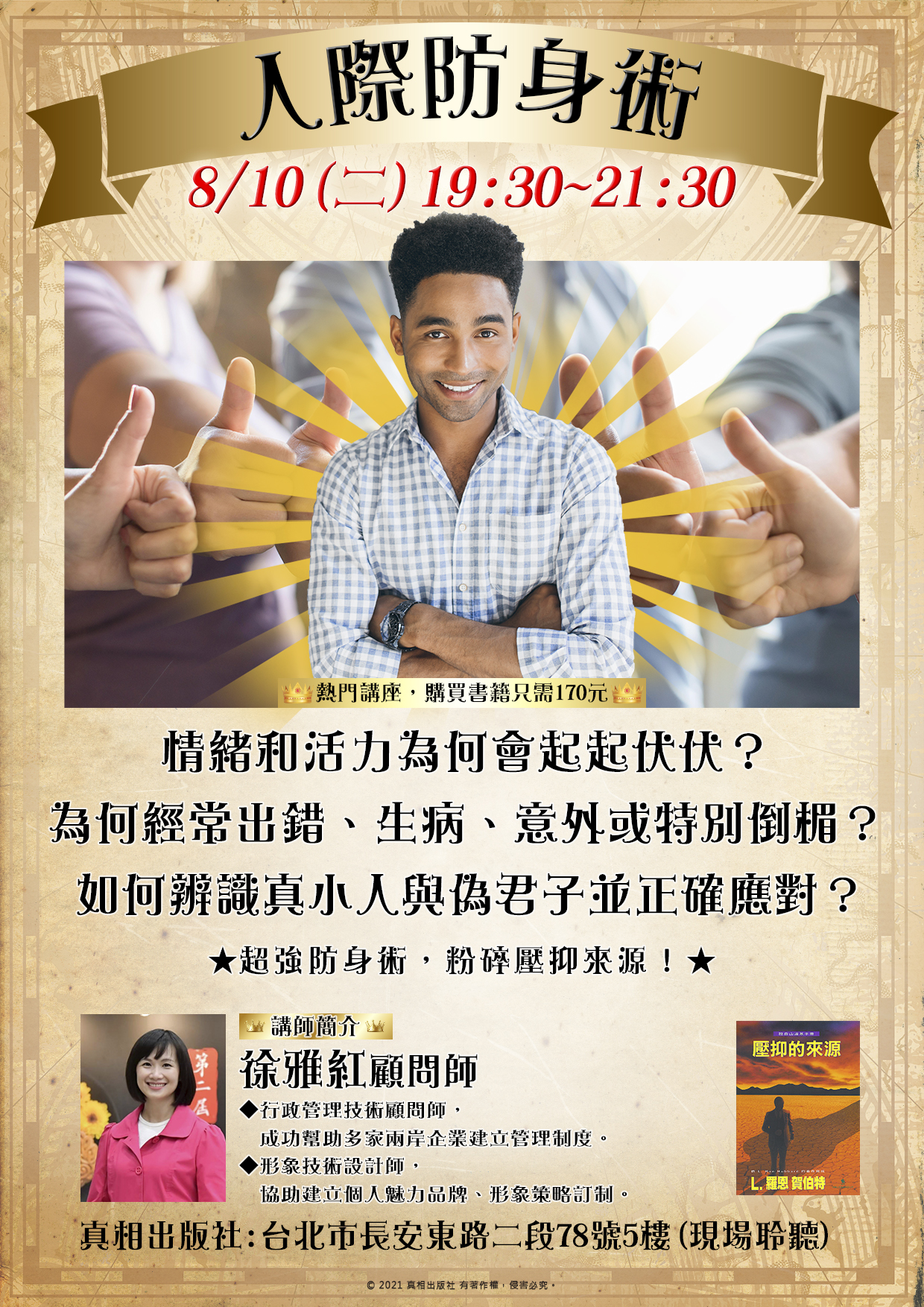 💥從這本小書及講座中,您將會發現如何辨認對您懷惡念的人,以及您真正的朋友。您將發現為什麼有些人生活如此不堪,您又可以怎麼幫助他們重拾美好的生活。您將瞭解一些常見但具毀滅性的情況,並阻止這些情況發生。您可以清楚且立即的改善生活,就像其他人辦到的一樣。