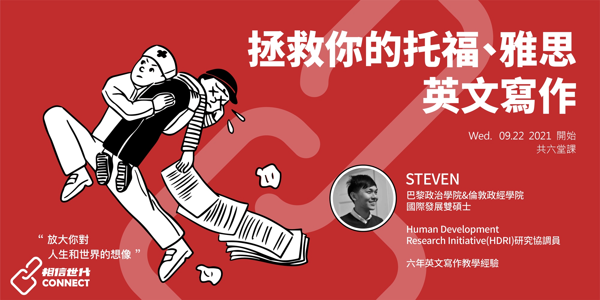 本次英文寫作課程,由相信世代 CONNECT 與社群夥伴 Steven 合作,幫助大家克服在寫作上的重重挑戰,從點線面開始,重新掌握你的英文寫作。