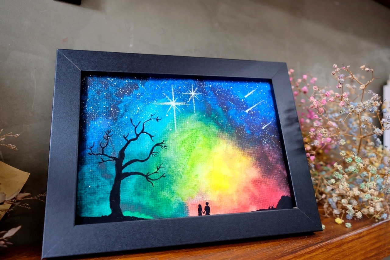 星空是一個蘊藏無限可能以及無限希望的美麗宇宙,從自己的手中畫出屬於你心中那片星空畫。水彩手作老師,會細心講解流程並教導作畫簡易技巧,讓不會畫畫或是第一次畫畫的人,都可作出令人驚豔的星空畫作。