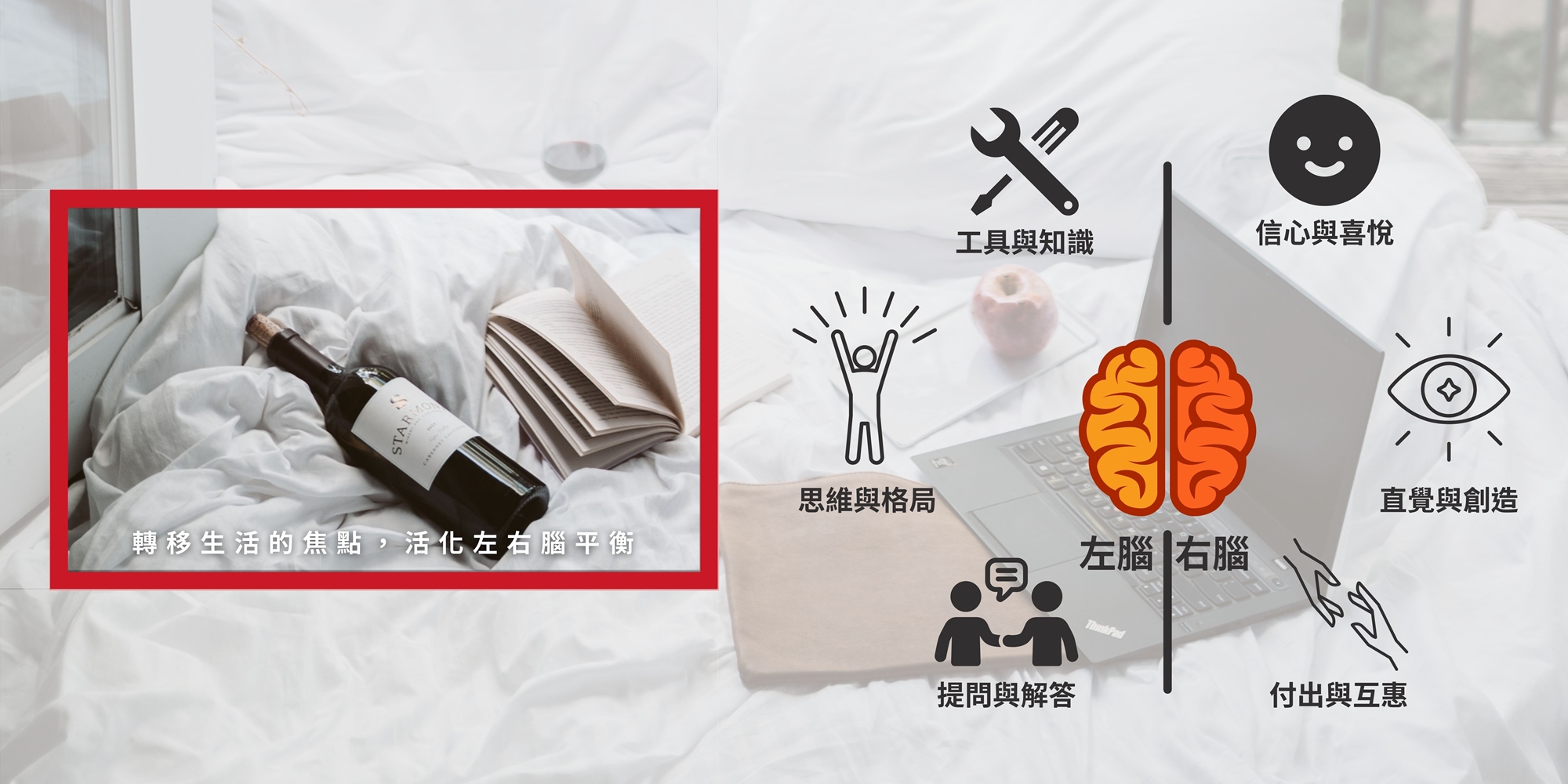 體驗營特別針對左右腦的訓練來幫助你為自己導航,環節內容包含: