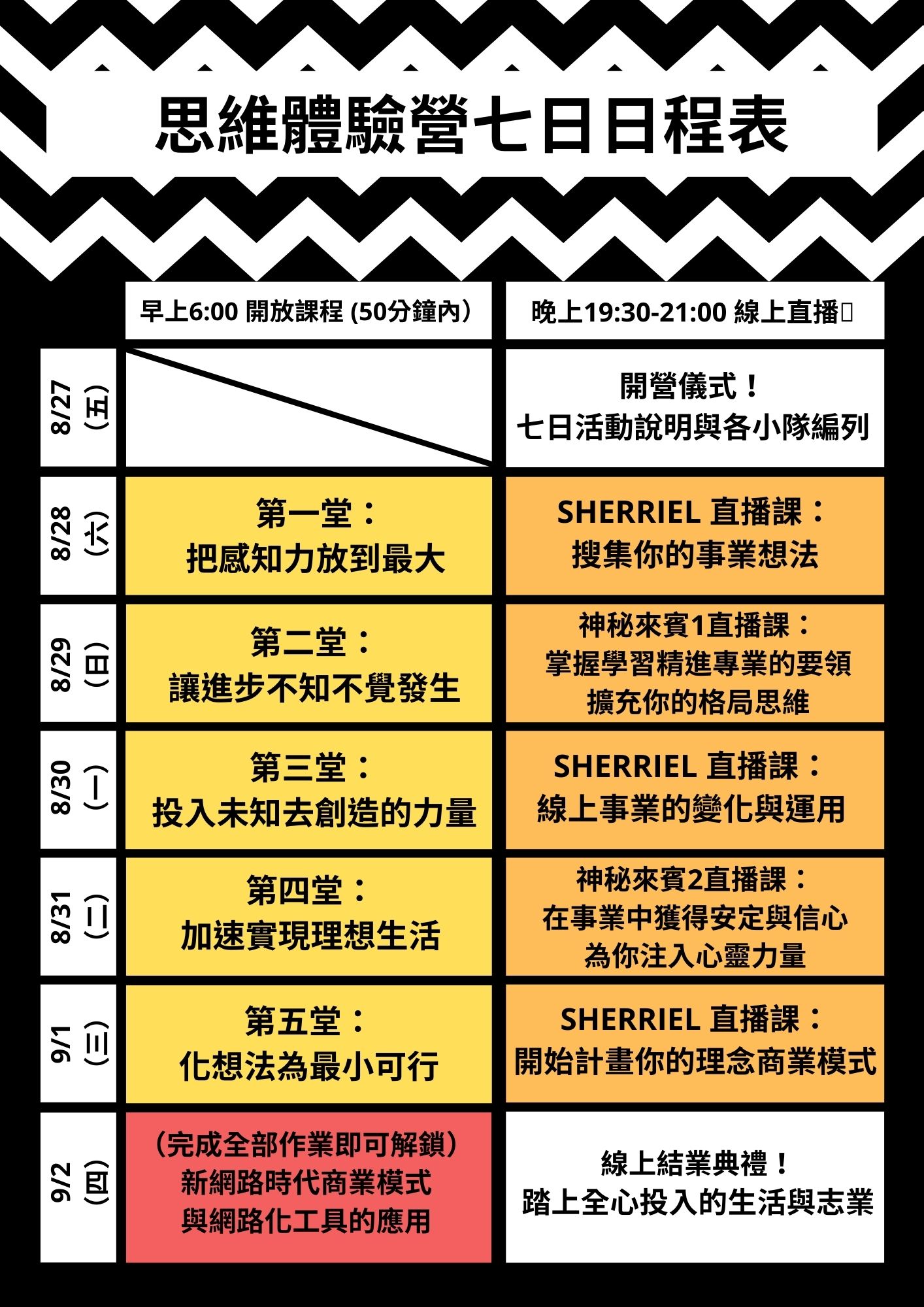 - 目前生命中目前卡關的問題來到七日思維體驗營。