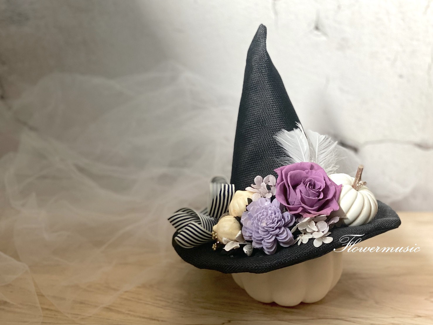 教學內容:如何將不凋花材及仿真材料配置到帽飾,在家也能營造出萬聖節的氛圍