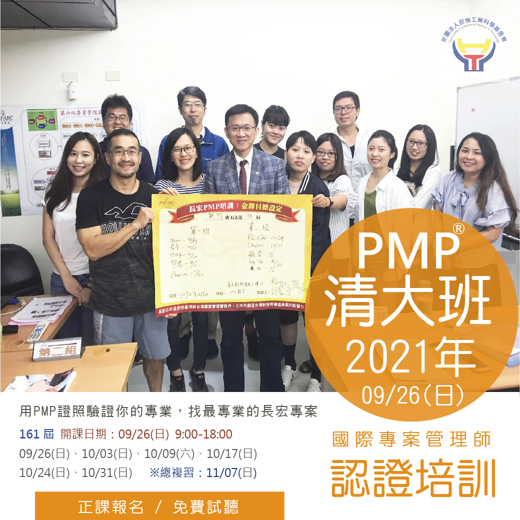 <清大長宏新竹班161屆PMP培訓課程資訊 >