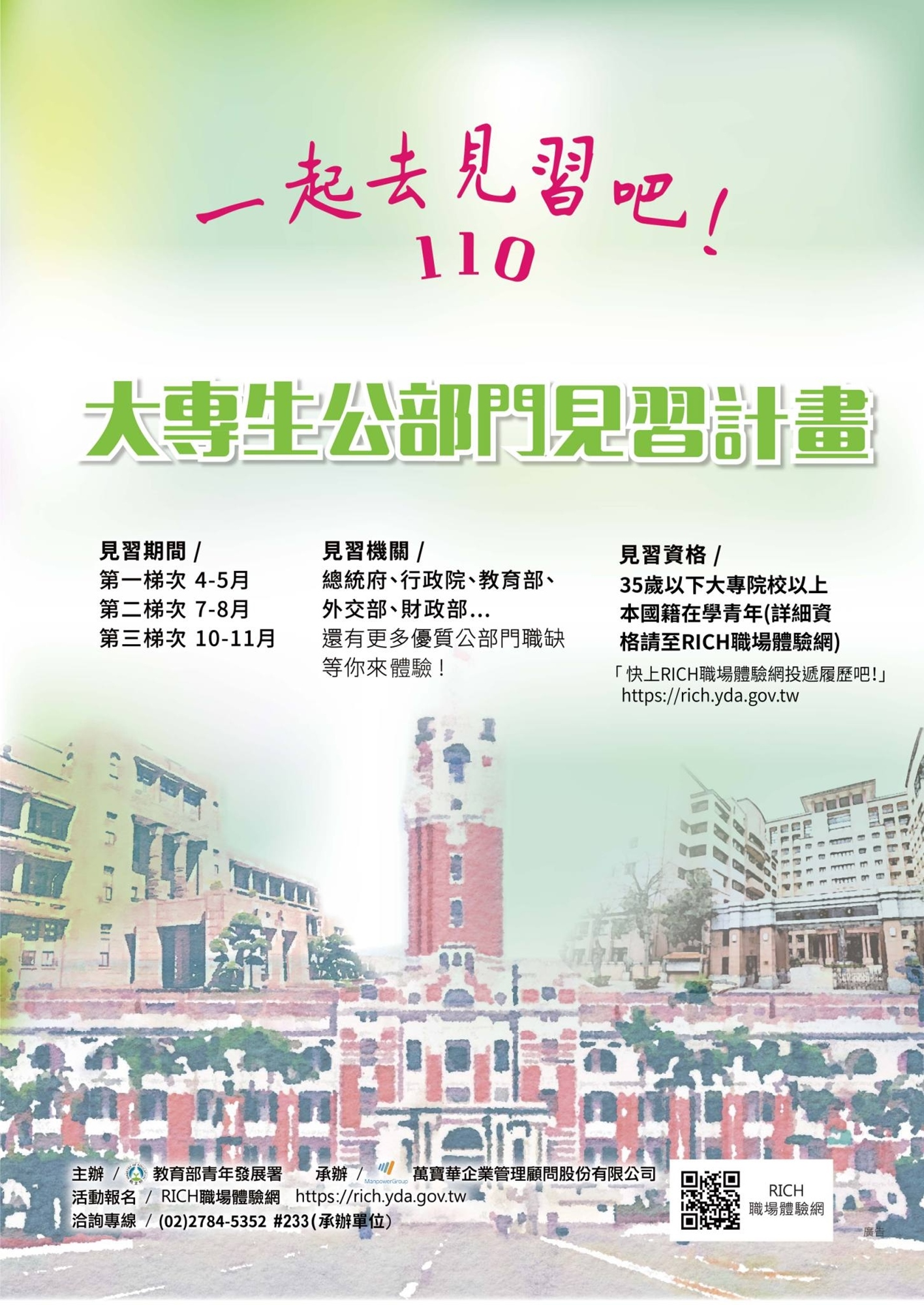 #公部門見習計畫 #RICH職場體驗網