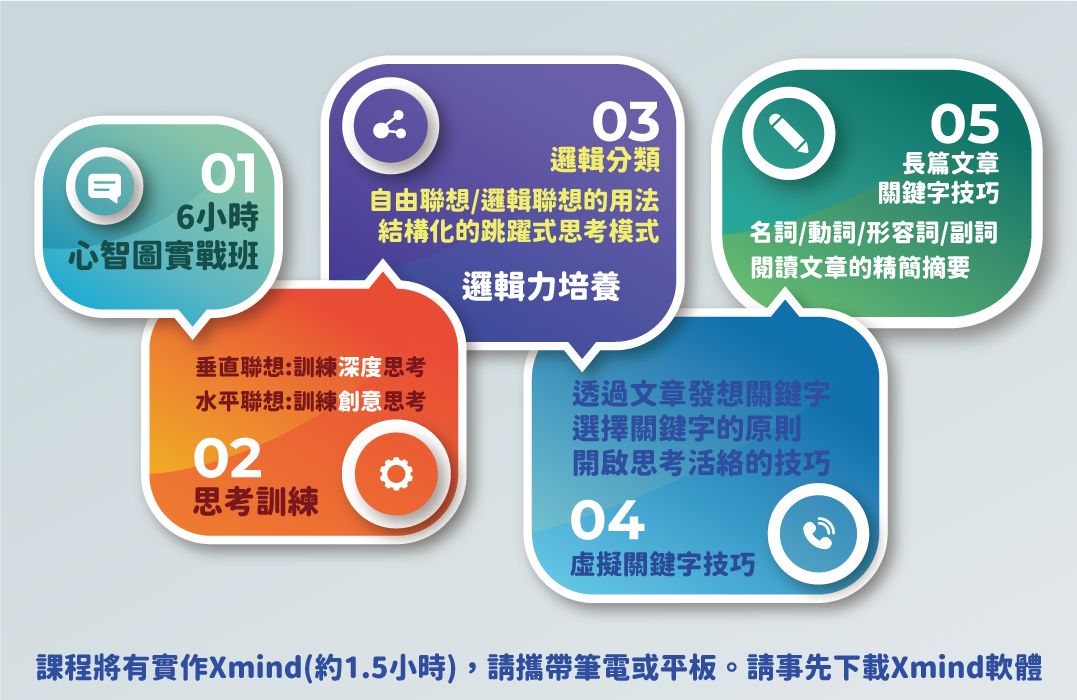 ※課程將有實作Xmind(約1.5小時),請攜帶筆電或平板。請事先下載Xmind軟體