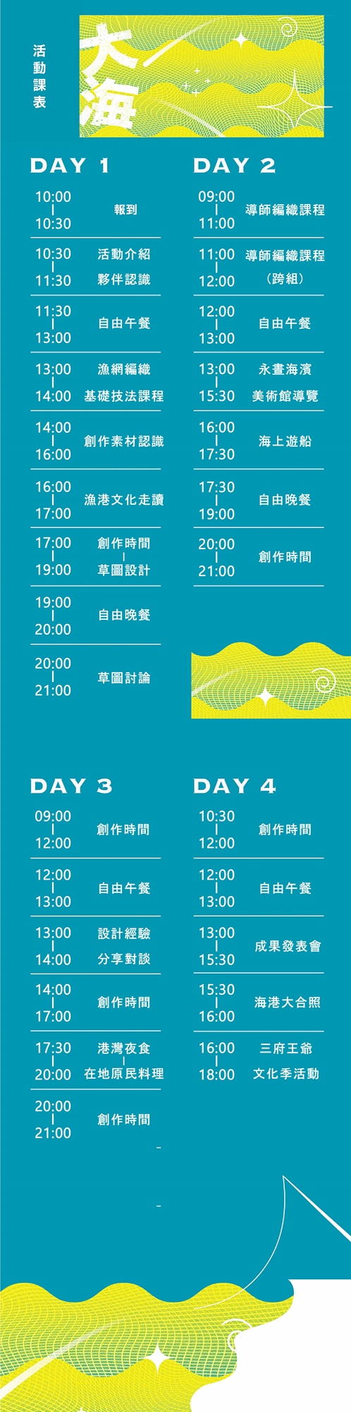 (含營期四天師資、課程材料、導覽、場地、遊船船票、原民料理、保險等費用,不包含住宿。