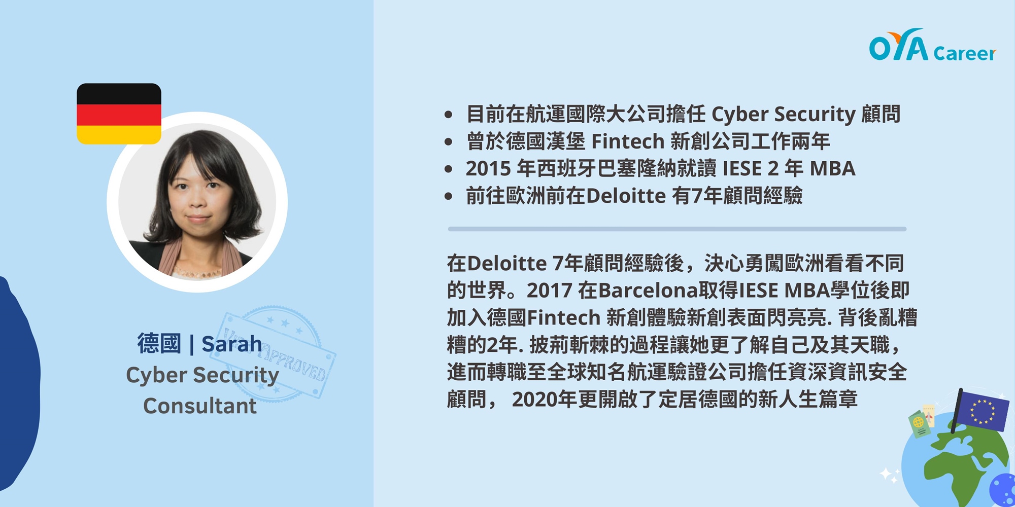 - 德國國際海運巨擘網路安全顧問 ─ Sarah