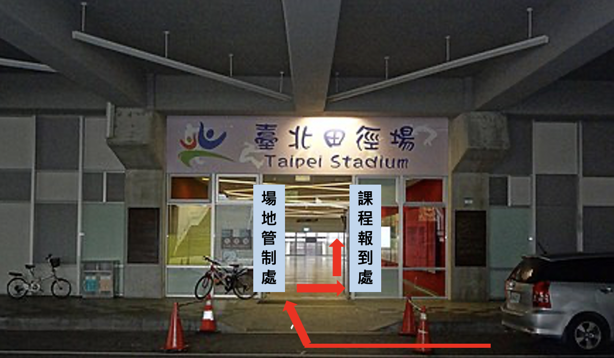 (b.)雨備場地:臺北田徑場1F走廊,由松山運動中心旁車道進入田徑場車道即可抵達(室外)