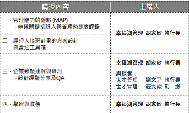 (優惠名額有限,有意推動經理人接班或管理團隊繼任計劃之企業承辦,可來電洽詢)