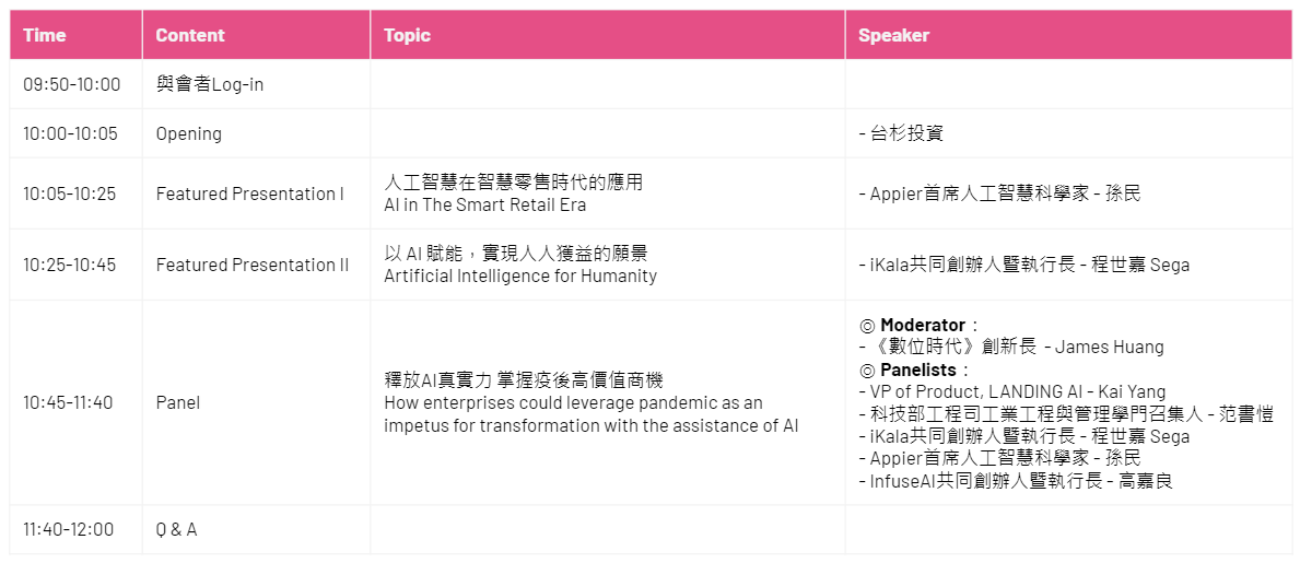 本次活動將邀請到深耕AI領域的專家,包括: