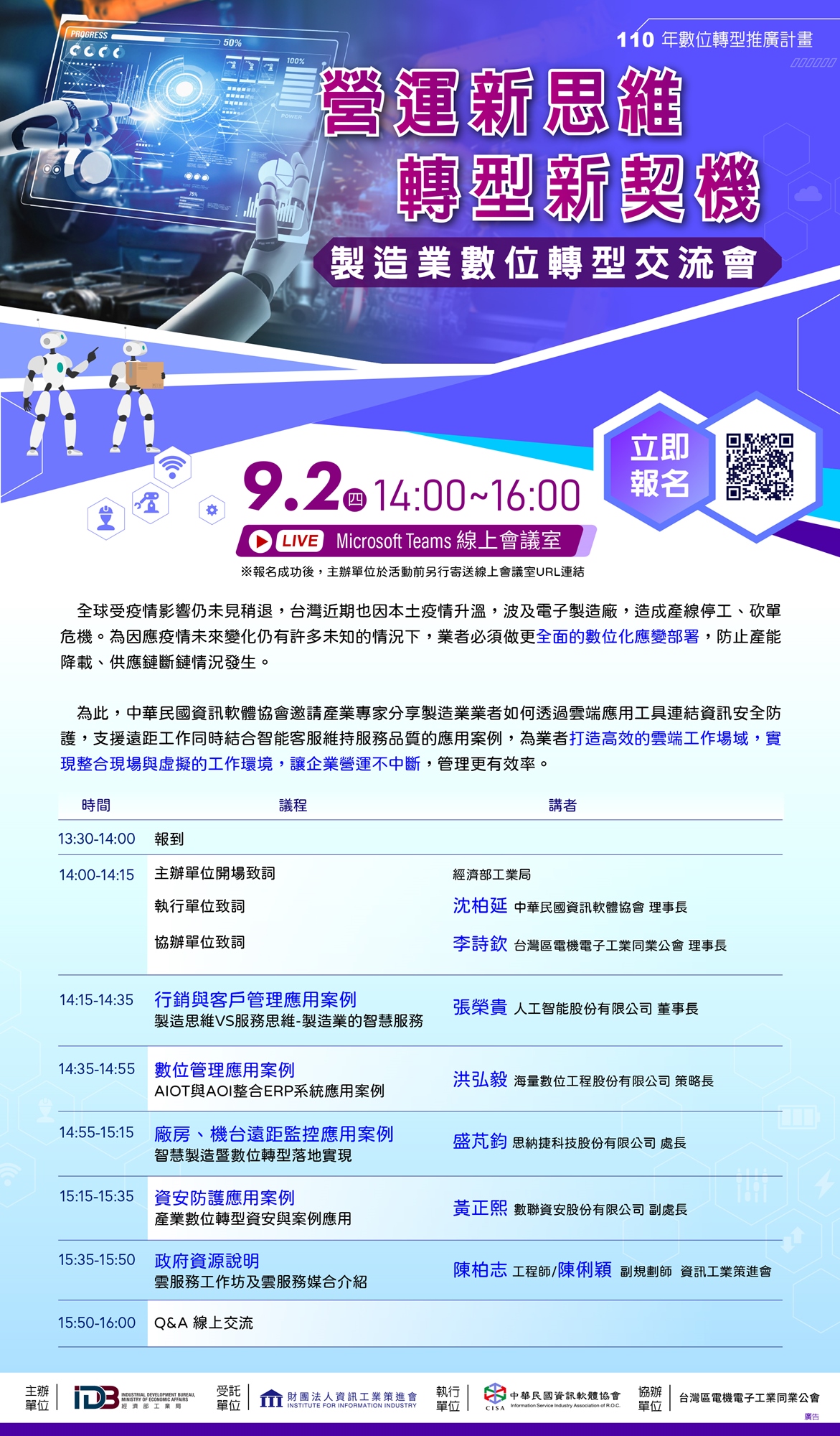 🎯活動對象: 電子電機業、傳統產業與欲做數位轉型規劃之製造業業者