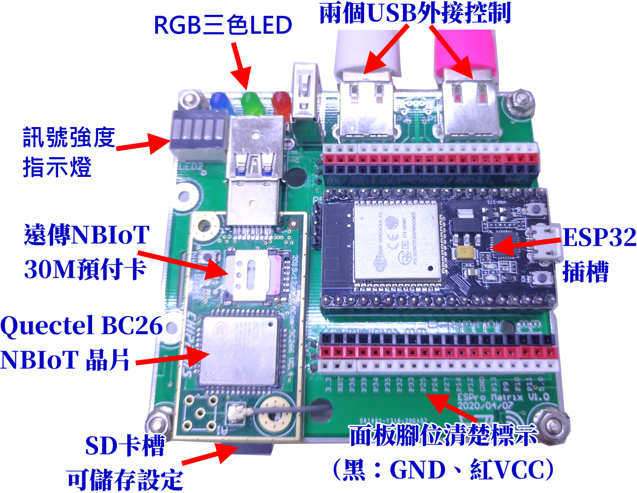 ▲本公司設計的ESP32+NBIoT整合型教學板