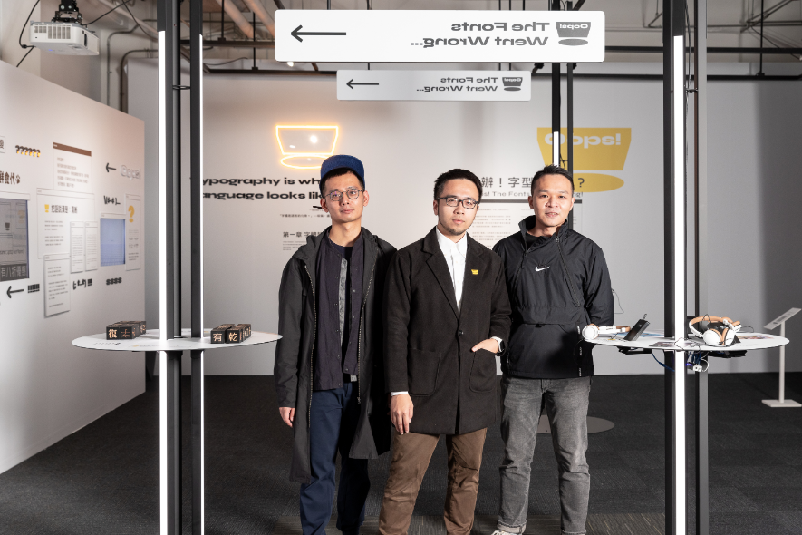 A:這個展覽想要以生活為出發,讓大家觀察與感受生活中「字型怪怪的點」。第一區「#字體超連結」的牆面指出生活中可以看到怪怪的文字,展區中央的展桌解釋與呼應。第二區「#造字實驗室」讓大家動手體驗字體如何被發想,了解字體的產生過程——字體這個媒材、工具到底有哪些細節。第三區「#文字新視窗」帶領大家了解字體可以在公共議題層面影響甚多,例如台灣現有的一些字型案例如何影響教育、資訊傳播;也找了日本有名的字型公司為例,看他們如何從字型切入公共議題。最後,我們希望大家對字型的各種面向提出自己的想法。從生活——到深入了解——再回到生活,以輕鬆的態度感受、到了解工具、最後回到公共議題,我們想要用字型好好與大眾溝通。