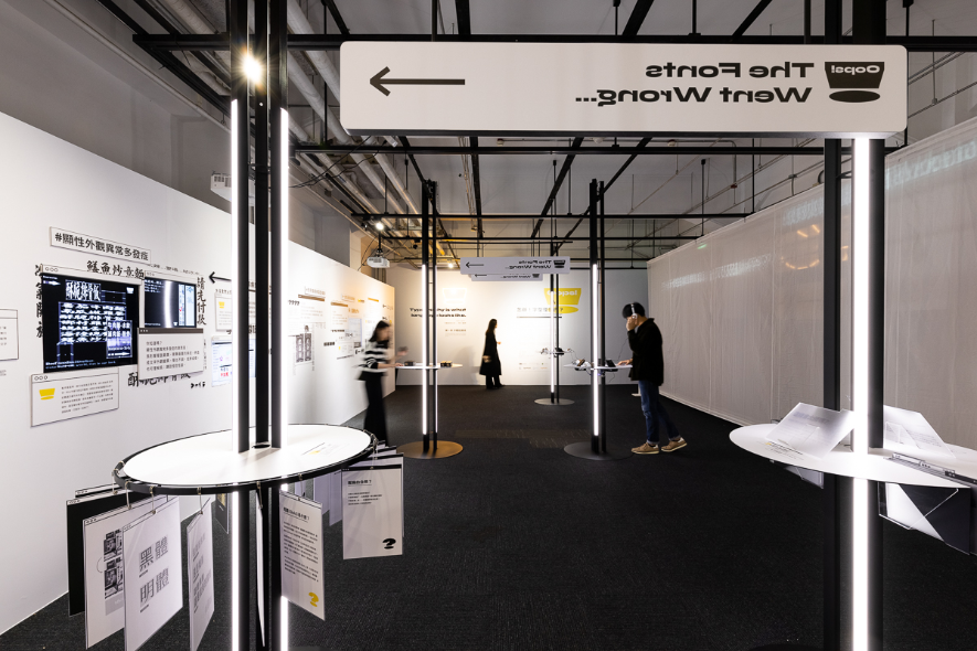 今年3月,以「金萱」字型募資計畫聞名的 justfont 團隊來到台灣設計研究院台灣設計館,展出「怎辦!字型怪怪的?」字型設計教育展。從台灣生活中常見的字型誤用談起,策展團隊打造了宛如網路科幻世界的字型虛擬國度,登入展場就像登入一場字型奇幻冒險旅程。在字型被病毒感染的世界,你能看穿字型的變異,重新了解字型的本質嗎?
