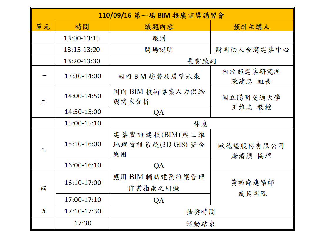 本次講習會透過建研所累積豐碩成果展示及業界BIM的應用經驗分享,讓大眾了解目前政府單位推動BIM的趨勢方向與決心,更希望透過營建產業中不同領域、不同系統的結合應用經驗分享,重新定義目前BIM的發展方向,激發國內AEC產業在BIM技術應用合作發展,讓國內建築相關產業除了能朝BIM前進,加以帶動國內營建產業技術應用自動化,加深應用層面的專業深度。