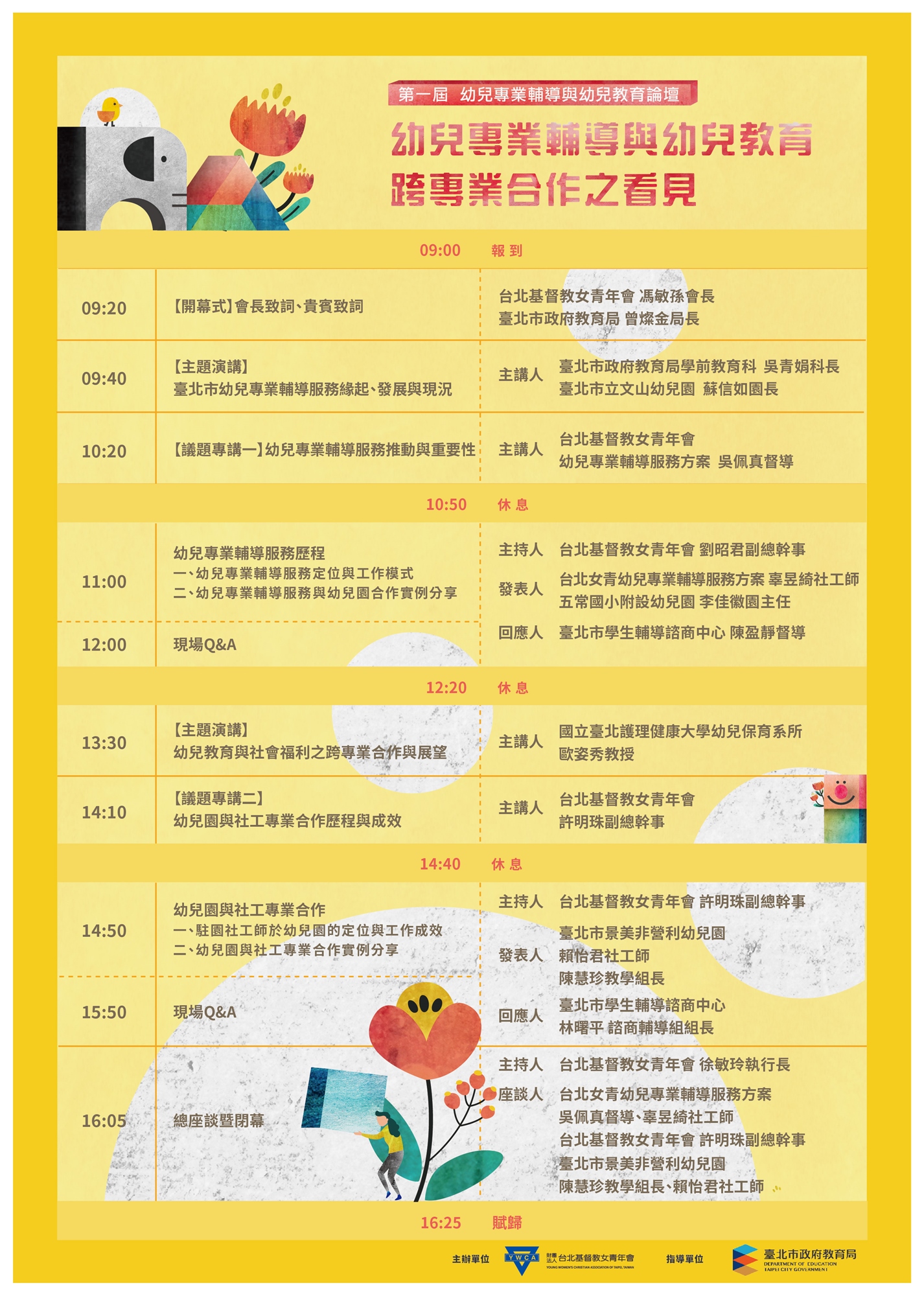 一、 對象:幼兒園教保服務人員、與幼兒及學校相關領域之實務工作者、相關科系學生及關心此議題者