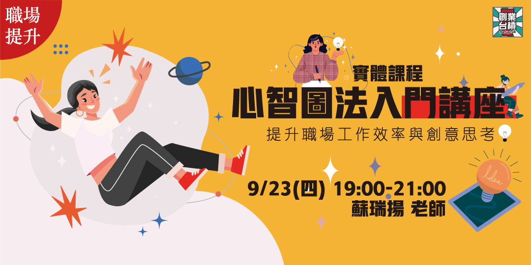 👆🏻 9/23 19:00~21:00📍9/23(四)|【職場提升】提升職場工作效率與創意思考! 心智圖法入門講座2H